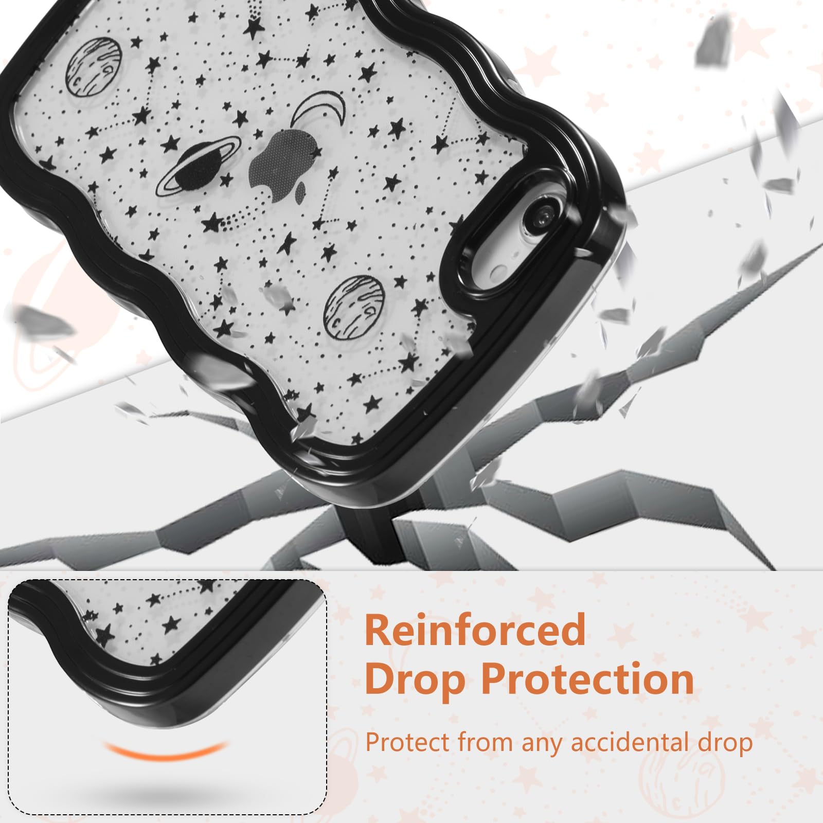 ZTOFERA iPhone SE3 / SE2 用波状のケース おしゃれ iPhone 7 クリアケース 人気 韓国 女子 アイフォン 8 ウェーブケース かわいい プラネット スカイ 星 月 宇宙 スマートケース 軽量 耐衝撃 ハード PC ソフト TPU バンパー ケース 画面レンズ保護 透明 携帯カバー (ブラック) | Bloomia