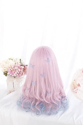 RyuuCos ロリータ かつら ロングヘア カール 巻き髪 ピンク ウィッグ サクラグラデーションブルー コスプレ 耐熱性 変装 仮装 プレゼント イベント ハロウイン クリスマス 学園祭 文化祭 お祭り | Bloomia