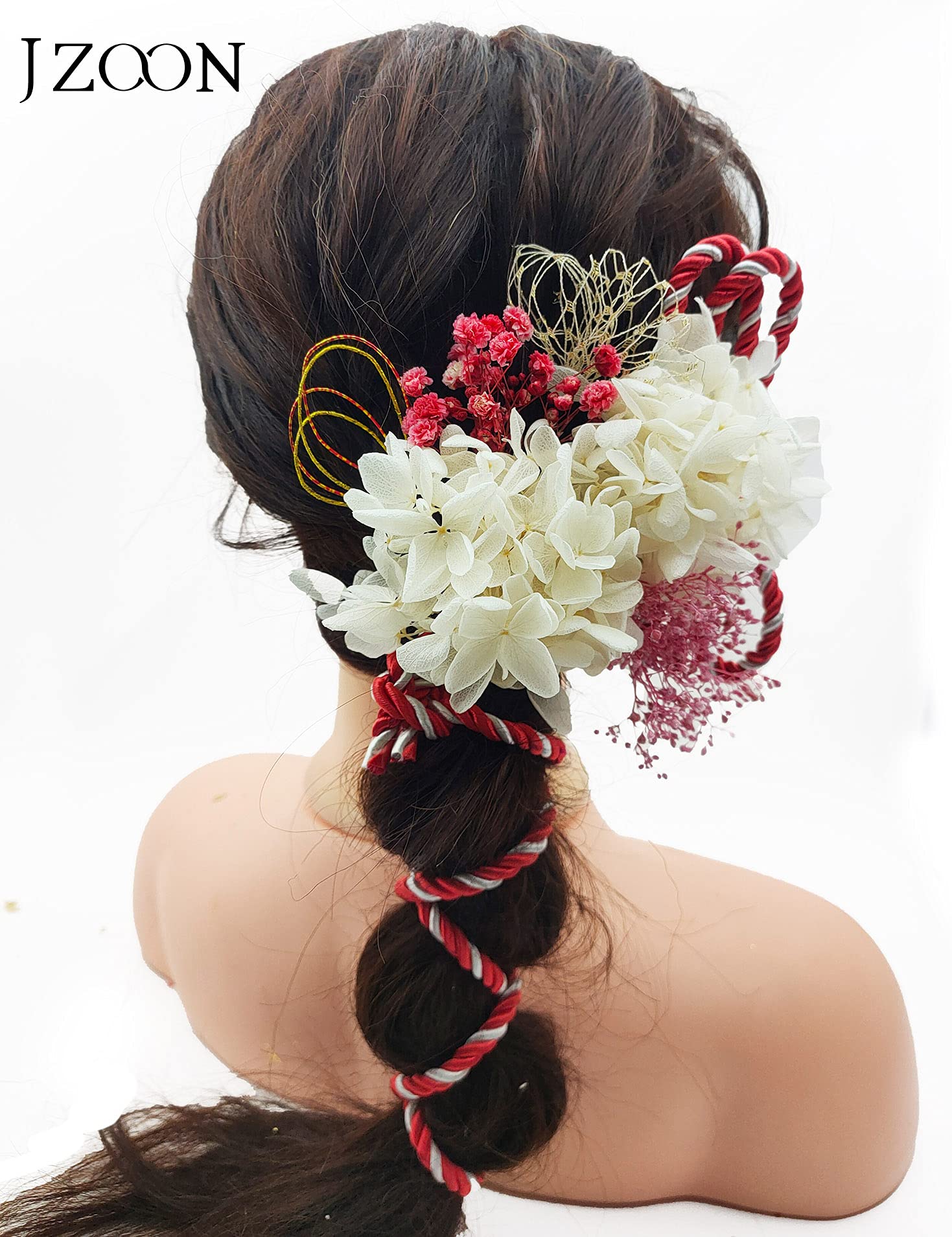 [JZOON] ドライフラワー 造花 髪飾り 花飾り 紐アレンジ ロープアレンジ 和装 浴衣 着物 振袖 袴 ヘッドドレス ウエディング 結婚式 ブライダル ヘッドアクセサリー 花 花嫁 和風 卒業式 成人式 七五三 | Bloomia