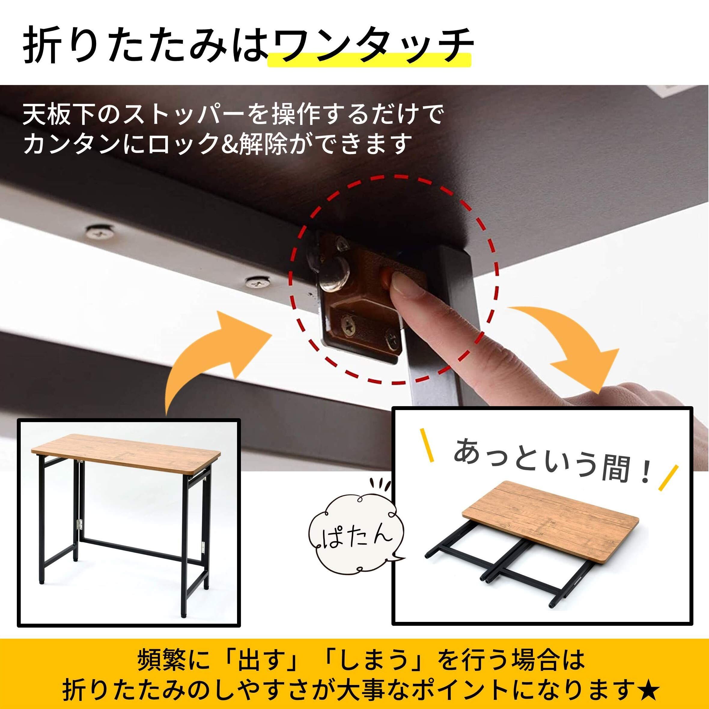 山善(YAMAZEN) 折りたたみ デスク 幅80×奥行40×高さ70cm コンパクト 傷・汚れ・水分・熱に強い天板(メラミン加工) なめらかな表面 角が丸い アジャスター付き 完成品 アンティークブラウン/ブラック RPST8040H(ABR/BK4) 在宅勤務