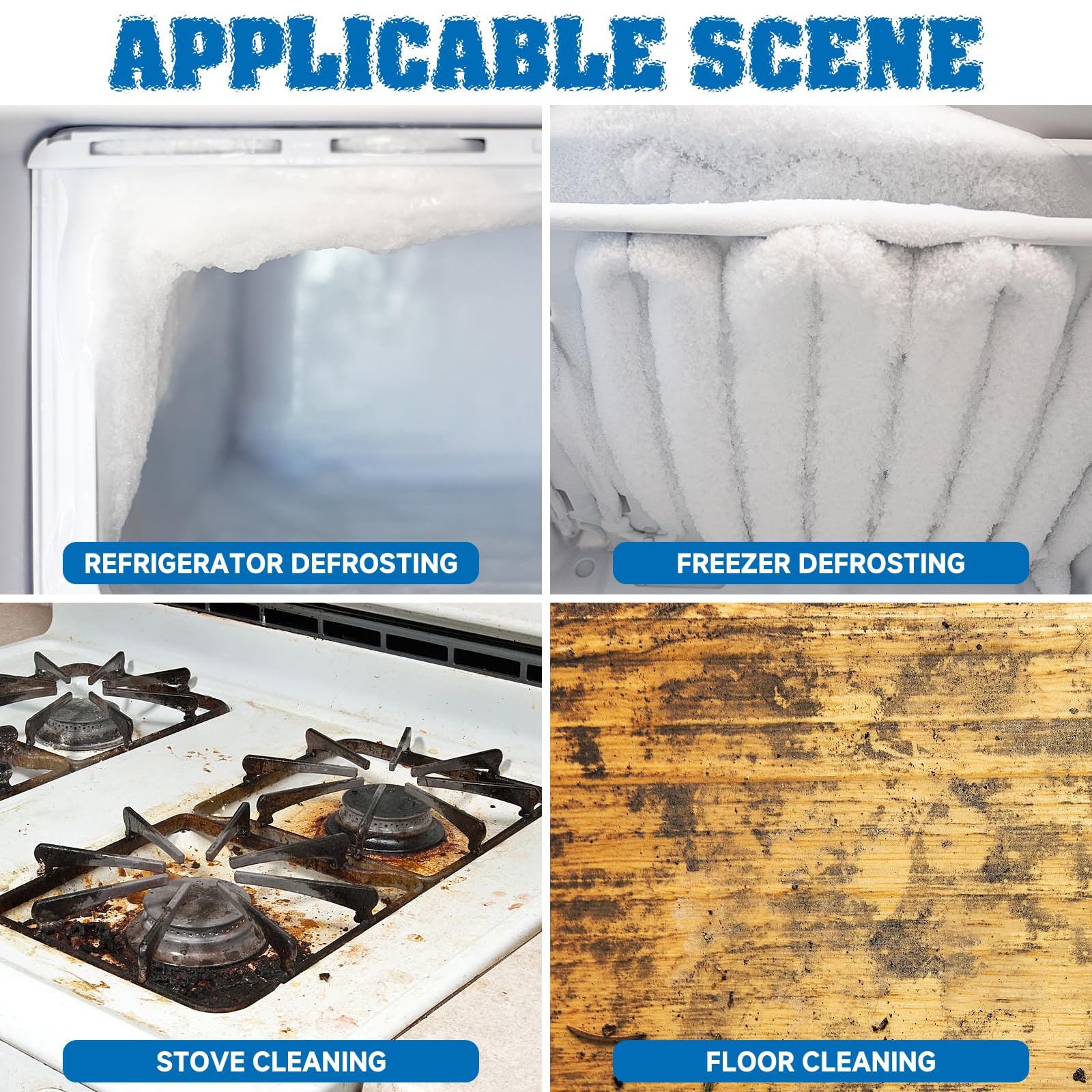 【除氷スクレーパー】幅広の平らな口の白色スクレーパーは、隙間に深く入り込み、頑固な氷や霜を傷つけずに効果的にこそぎ落とすことができます。掃除が簡単です。