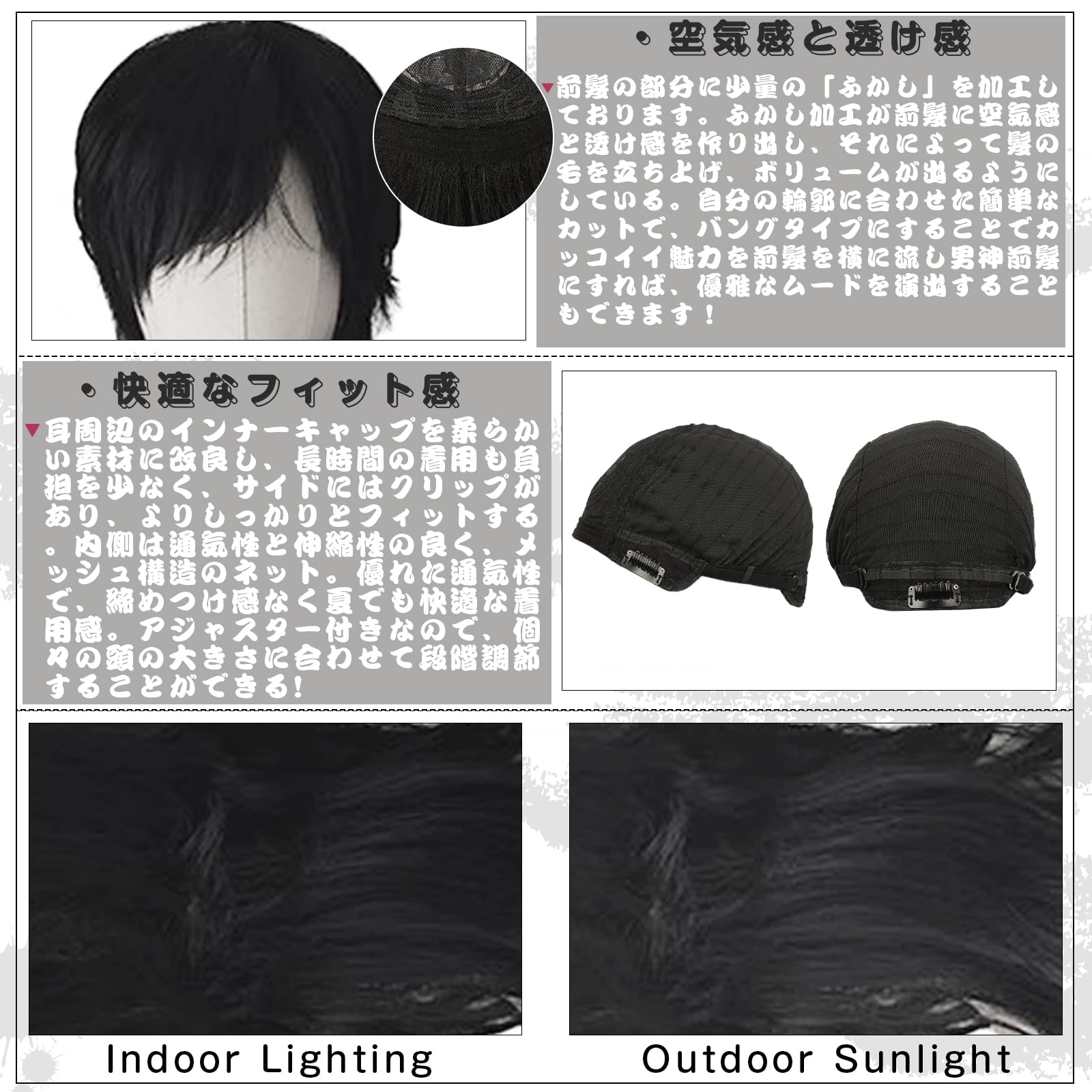 Hawkko ウィッグ メンズ ショート ウルフ カール フルウィッグ ロング かつら 男装ウィッグ 黒 男性 ウルフカット カツラ メンズ 原宿 イケメン ハンサム 男性用 自然 小顔 耐熱 人気 ファッション イメチェン cosplay コスプレ ハロウィン 男女兼用 ネット/櫛付き(ブラック) | Bloomia