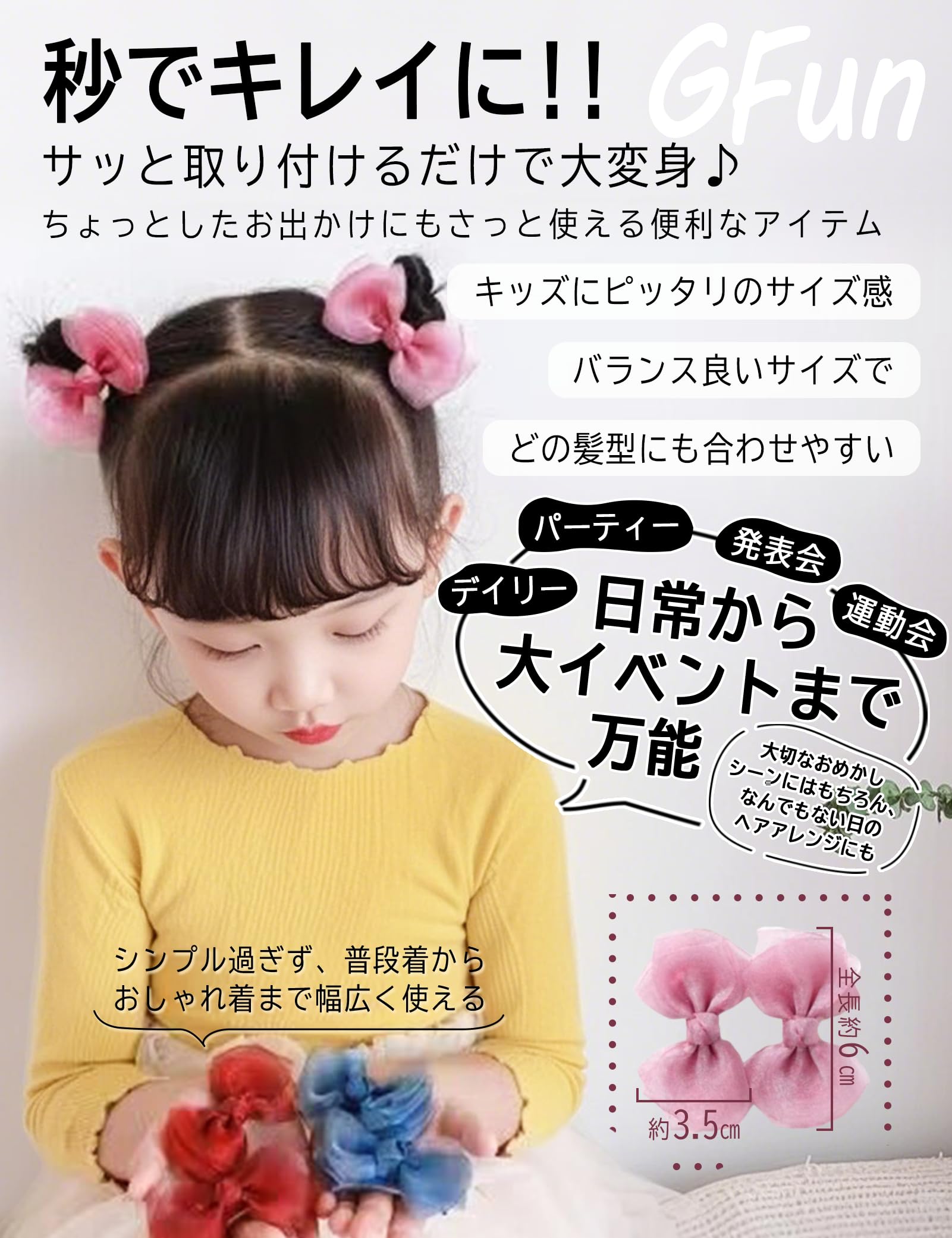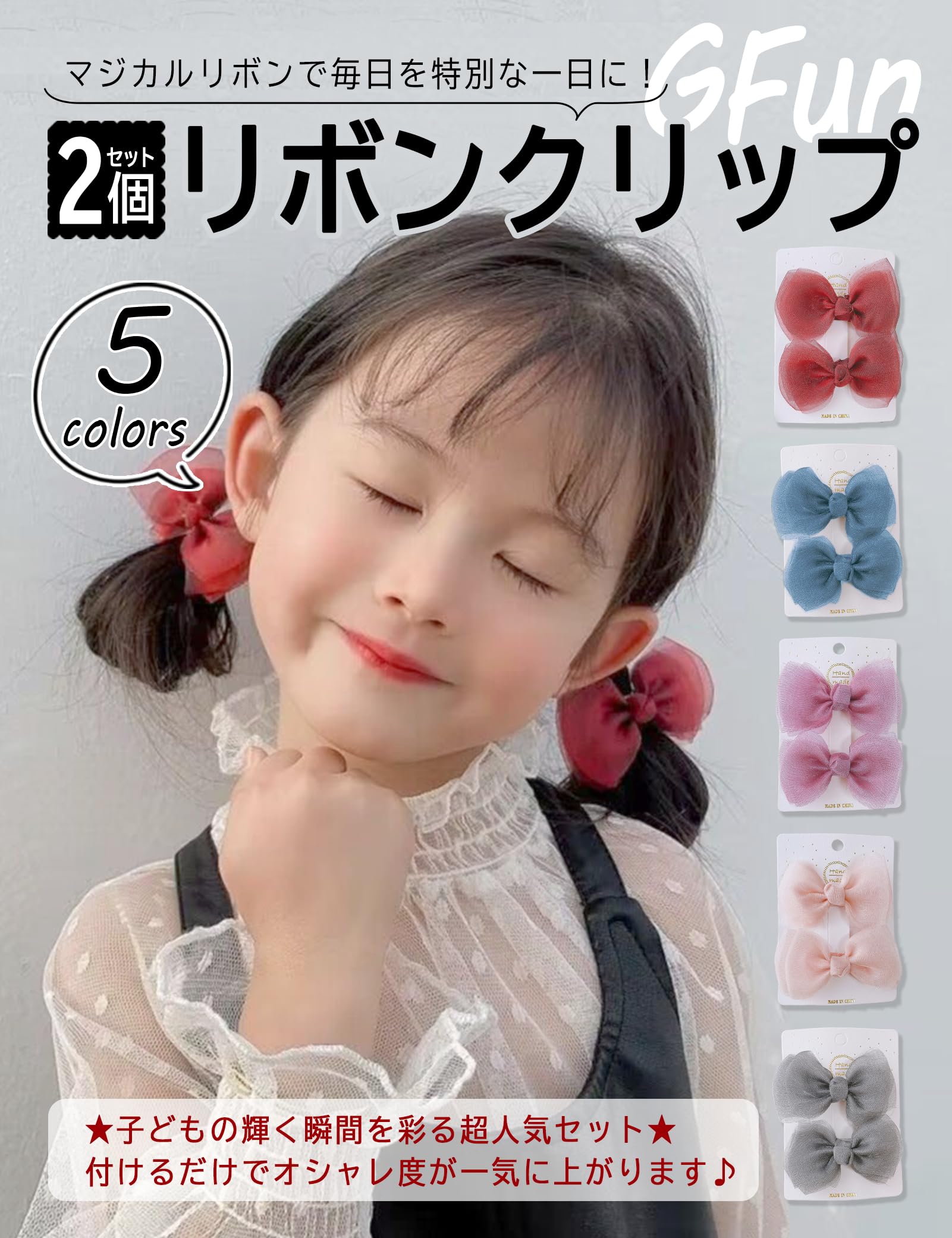 GFun 髪飾り リボン 灰色 小さめ 子供 2個セット クリップ ヘアアクセサリー バレッタ 袴 卒園式 結婚式 発表会 浴衣 洋服