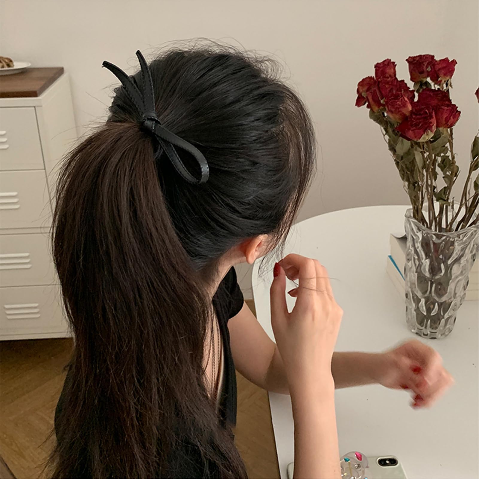 【実用性と審美性】このレザーバンドは、実用性と美しさを完璧に融合させ、あなたの個性とセンスをアピールします。伸びが良く使いやすいヘアゴムで,耐久性に優れています。一方、PUのリボンはヘアスタイルに明るさを加えることができる。