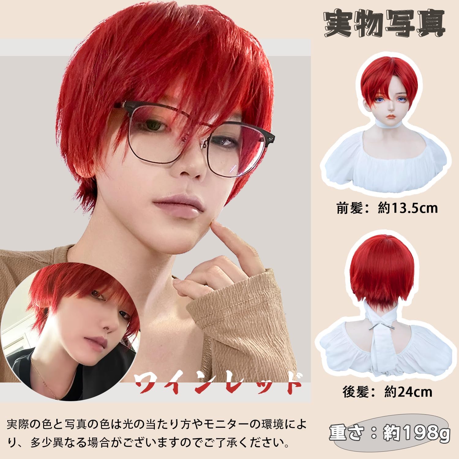 Sofeiyan ウイッグ かつら メンズ ショート 男装 原宿 フルウイッグ 自然 耐熱 小顔 人気 イケメン ファッション 男女兼用 コスプレ 男性 イメチェン 学生 通勤 (ワインレッド) | Bloomia