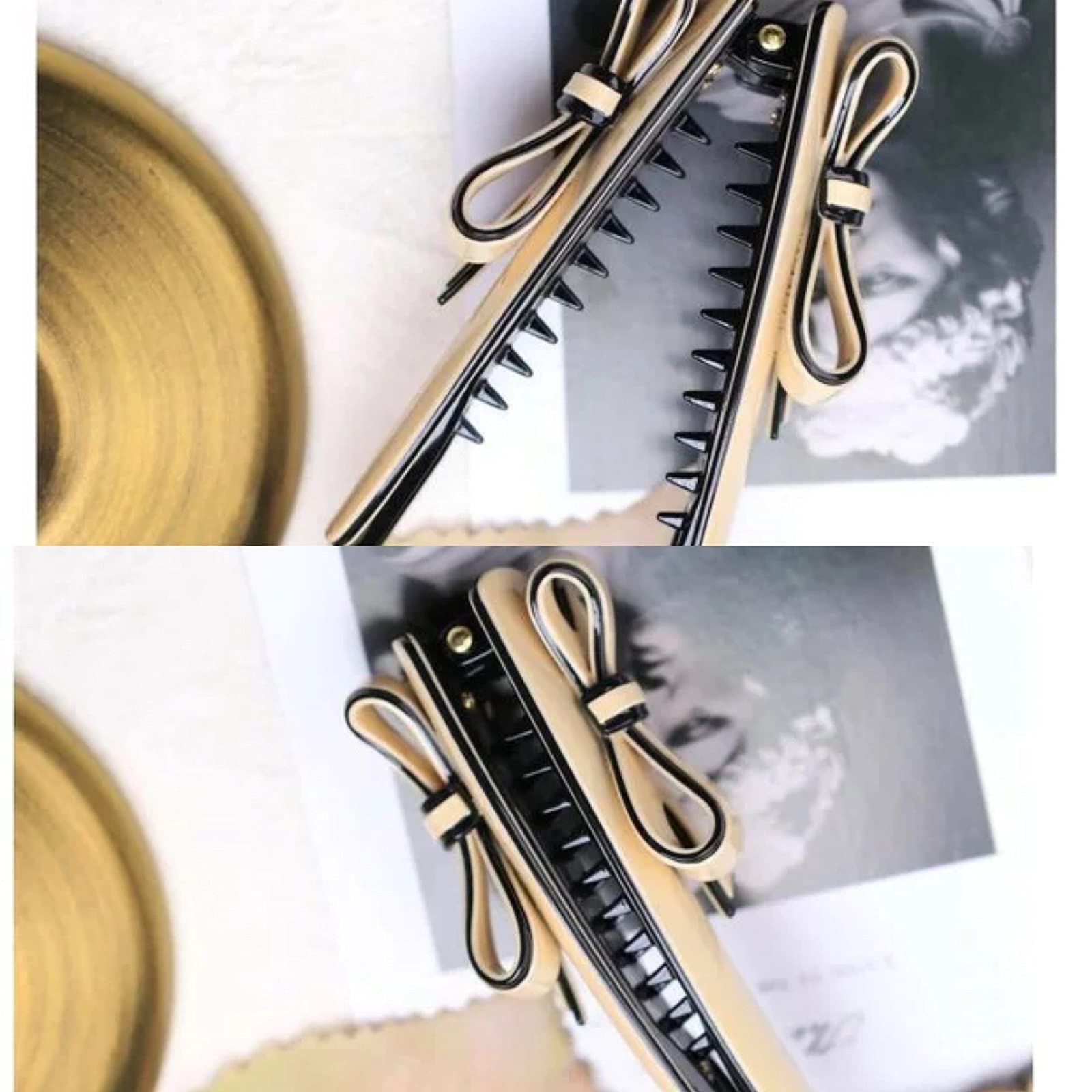 リボン バナナクリップ レディース ヘアアクセサリー 大人 子供 人気 ヘアクリップ シンプル オシャレ おしゃれ プレゼント 収納袋付き (ベージュ色)