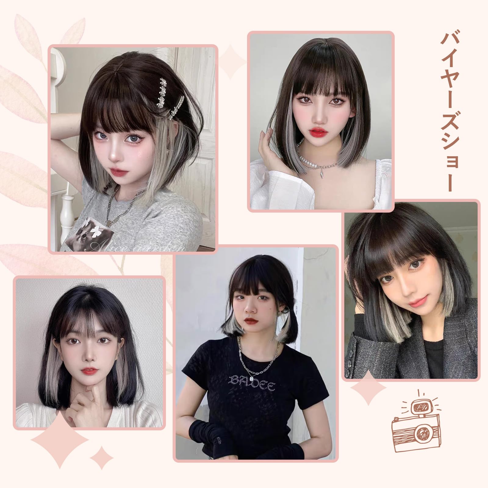 HAIRCUBE ウィッグ ボブ ショート フルウィッグ インナーカラー 黒髪 ボフ フルウィッグ 黒 医療用 ストレート wig かつら コスプレ 自然 女装 (インナーグレー) | Bloomia