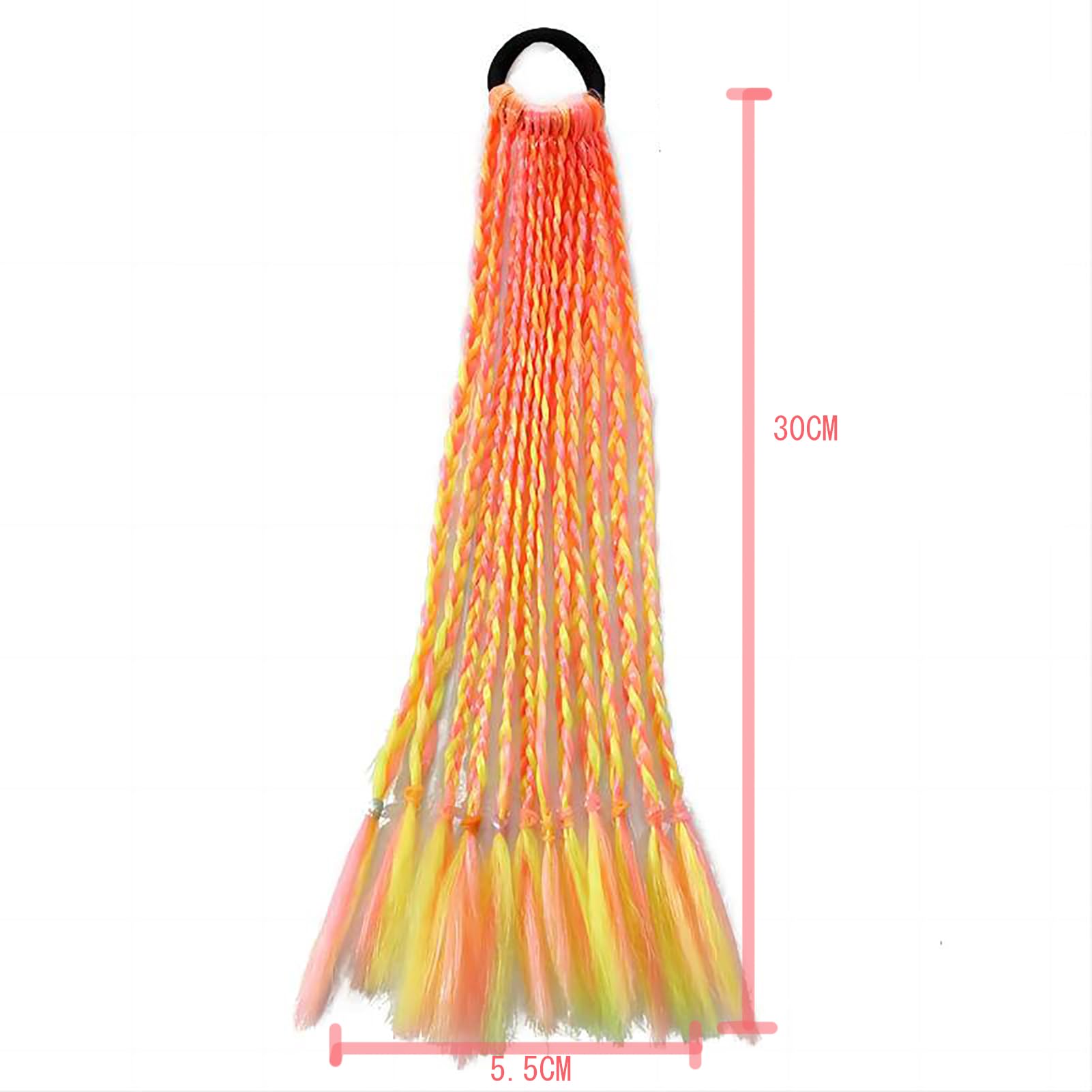 ウィッグ エクステ 三つ編み 編み込み 子供 ワンタッチ グラデーション ポニーテール ウィッグ キッズ エクステンション ヘアエクステ 儿童舞蹈 发表会节万圣节服装 12本のお下げセット (明黄橙紅) | Bloomia