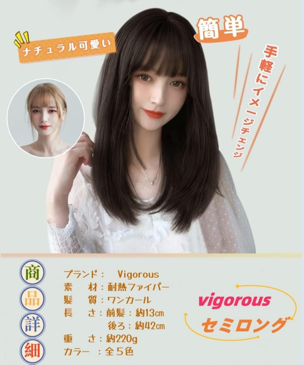 【ご注意】: ①カラー:ご使用のパソコンのモニター設定や部屋の照明により、実際の商品と若干色味が異なる場合があります。②前髪:それぞれの人に合った長さにデザインされており、好みに合わせてカットすることができます。③ケア:静電気や絡まる場合は柔軟剤やトリートメントでケアすれば大丈夫です。