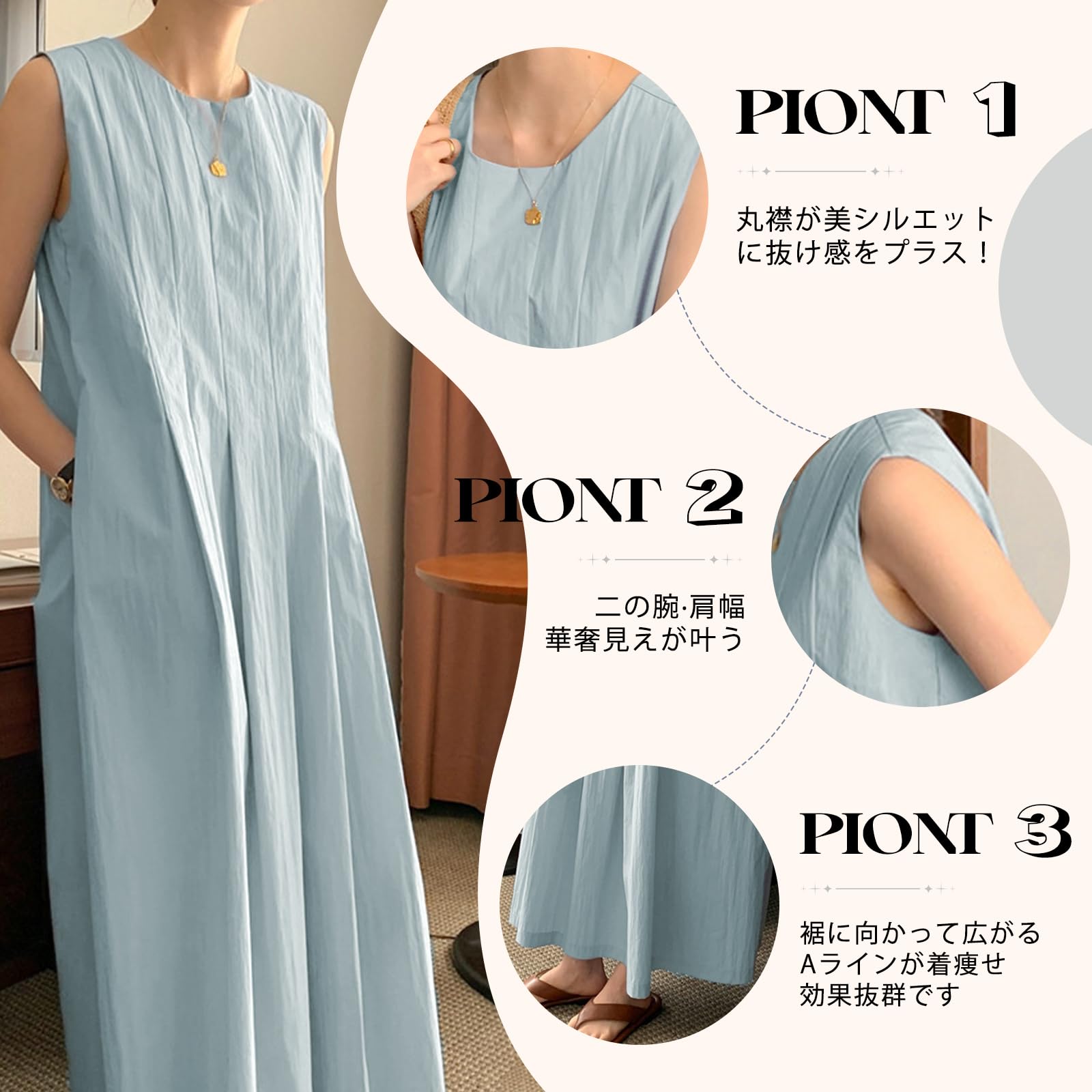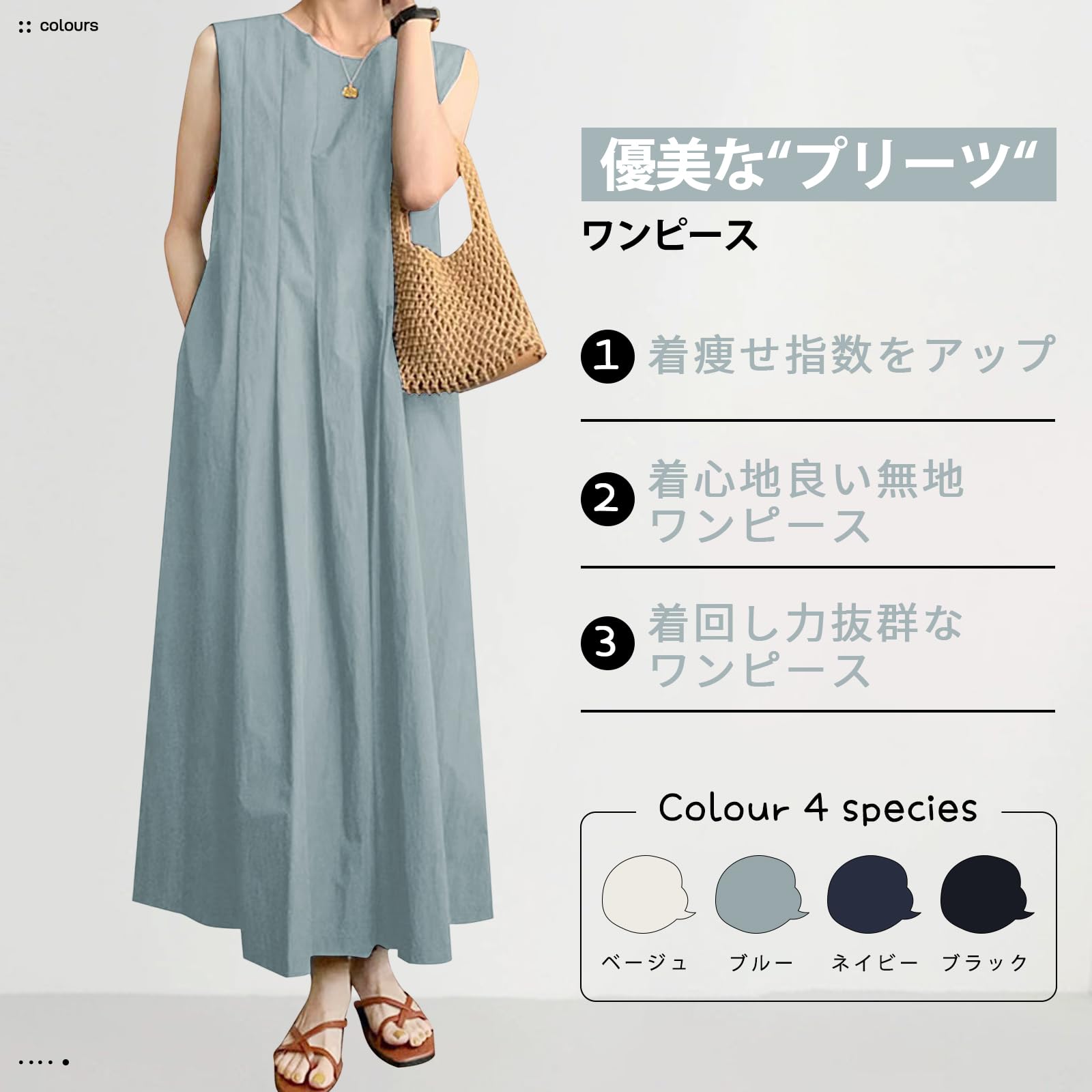 [Guooryvner] グオーリーブナー ワンピース レディース ロングワンピース 夏 春 ノースリーブ aライン プリーツ 大きいサイズ かわいい カジュアル 夏服 マキシ丈 オフィス ゆったり きれいめ 綿 ロング 着痩せ 体型カバー 通勤 韓国 | Bloomia