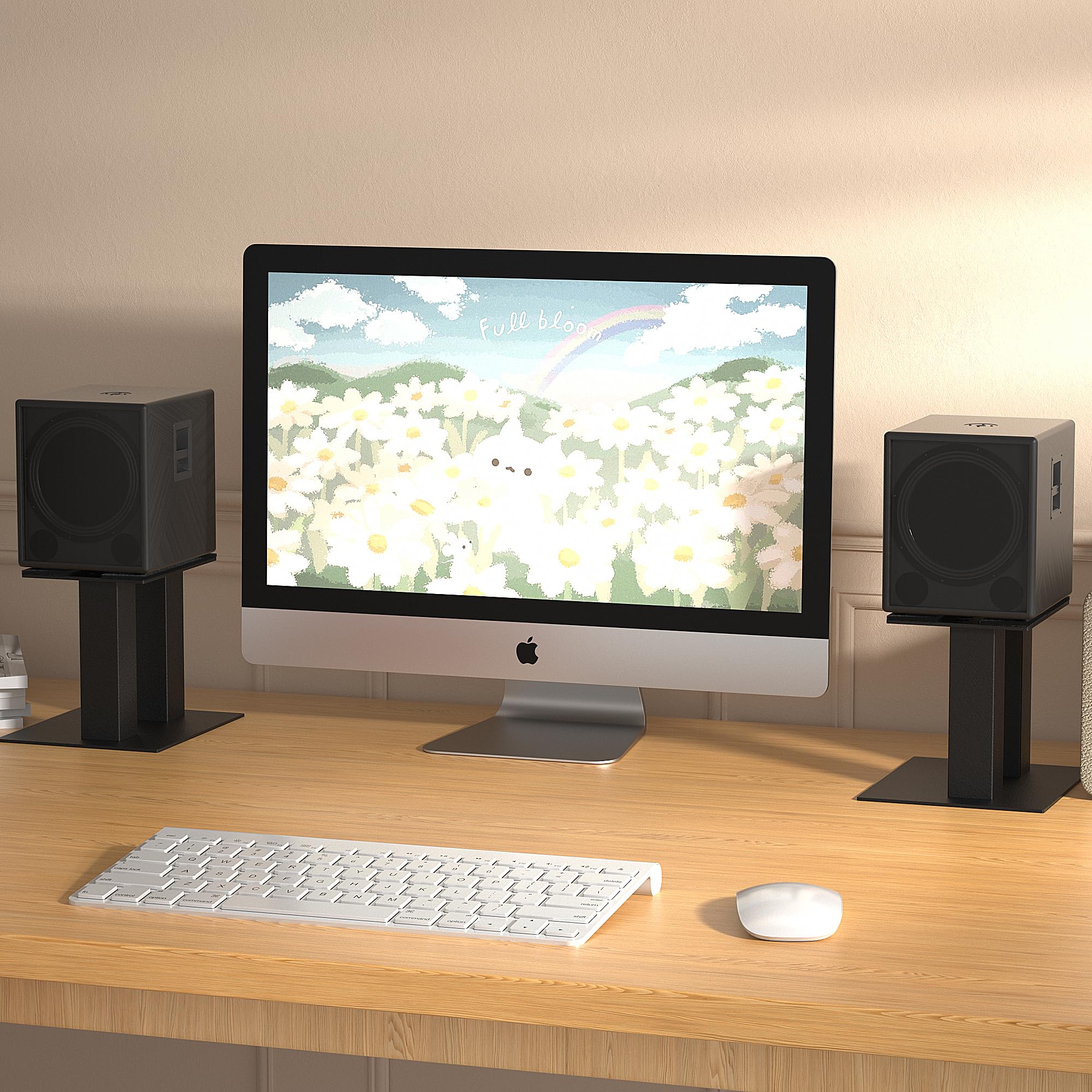 BQKOZFIN スピーカースタンド 卓上 小型 金属製 天板:240mm×210mm 高さ:250mm 耐荷重30kg [2台1組]