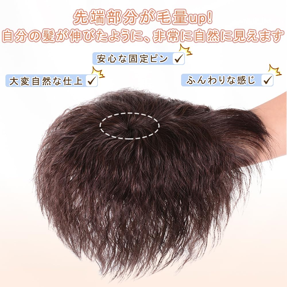 AISIHAIRウィッグ ヘアピース 巻き髪 カールヘアー 脱毛隠し つむじタイプ 増毛部分かつら ポイントウイッグ 最高級人毛 かつら ナチュラルブラウン 部分ウィッグ
