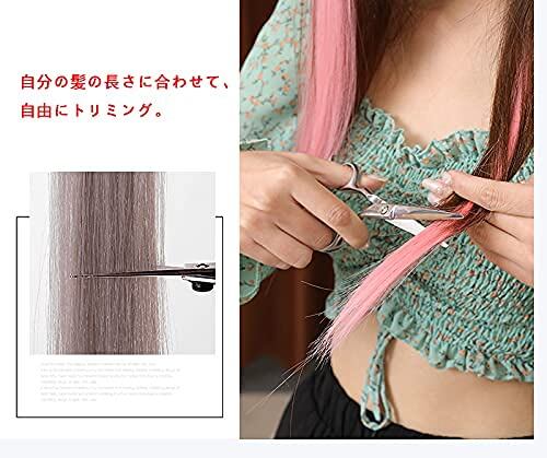 カラフルエクステ 2本セット ポイント ウィッグ ワンタッチ クリップ つけ毛 ストレート 簡単取付