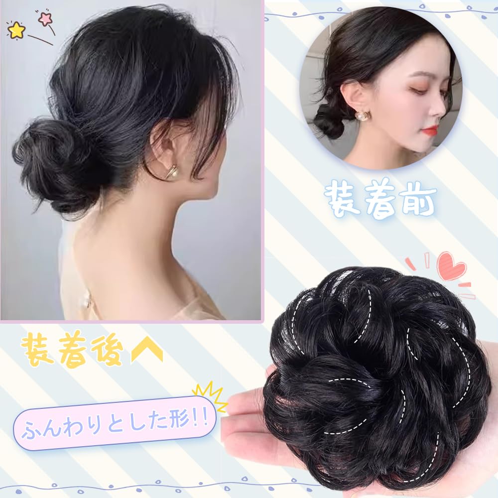 瞬間変身、ヘアゴムタイプで、シュシュとして使いやすい、携帯も便利で旅行でも使えます。自分の髪の色に合うタイプを選んでから髪をくくるだけで簡単にお団子にボリュームを出します。