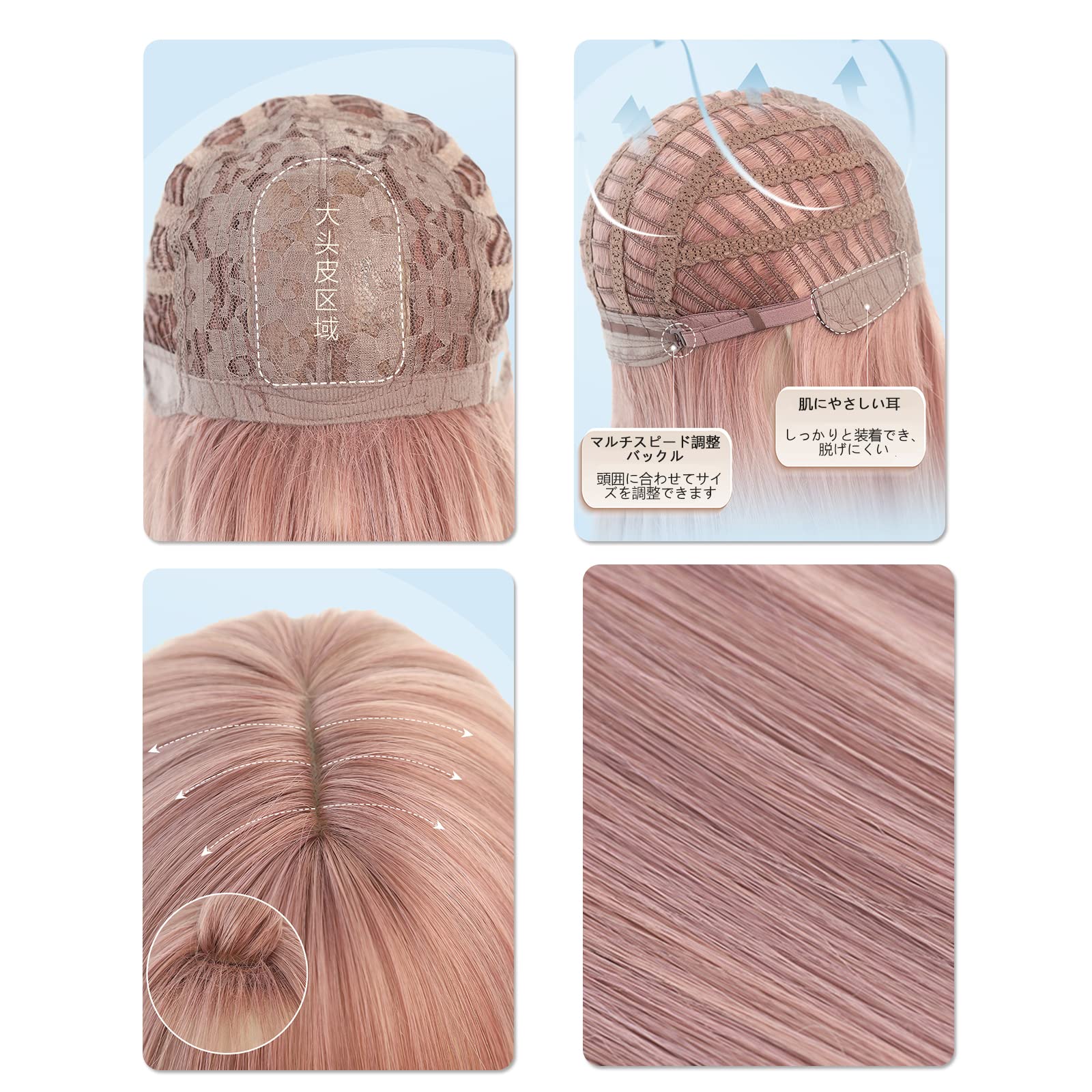 【ウィッグ素材】高品質耐熱ファイバーを使用の耐熱ウィッグ、コテ・アイロンも使用OK(160度まで)。光沢の少ない「ファイバー」を採用し、人毛に近いしっとりとした自然な手触りを作成しています。【サイズ調整可能】ウィッグがサイズ調整できるので、ぴったりなサイズでご着用いただけます。