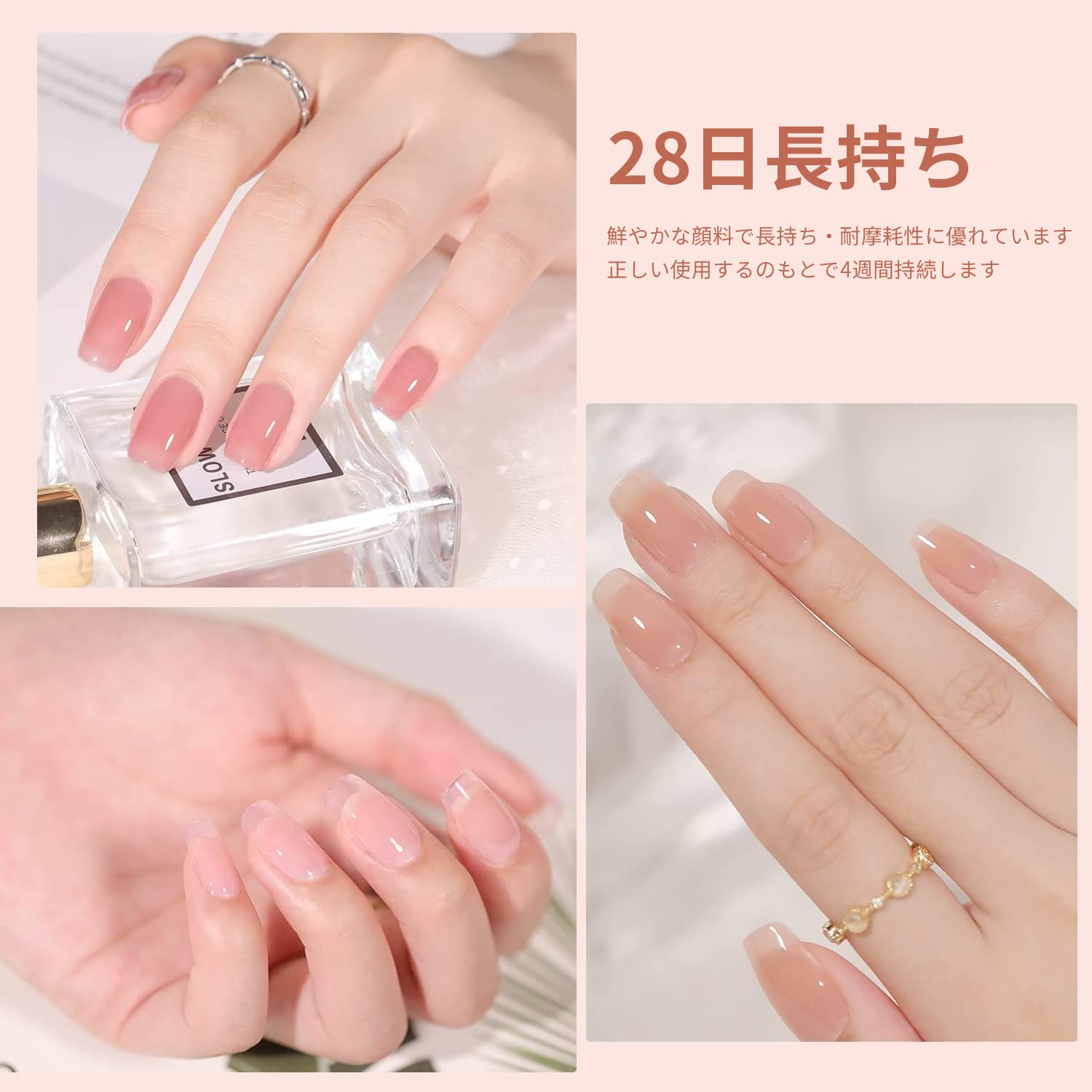 ハイグロスと28日長持ち:正しく塗れば、約4週間長持ちすることができます。高い耐久性と強烈な色素を持つシロップジェルは、あなたに鮮やかな輝きのある仕上がり効果がもたらします。透明感がるジェルネイルで、重ね塗りすることで様々な効果が得られます