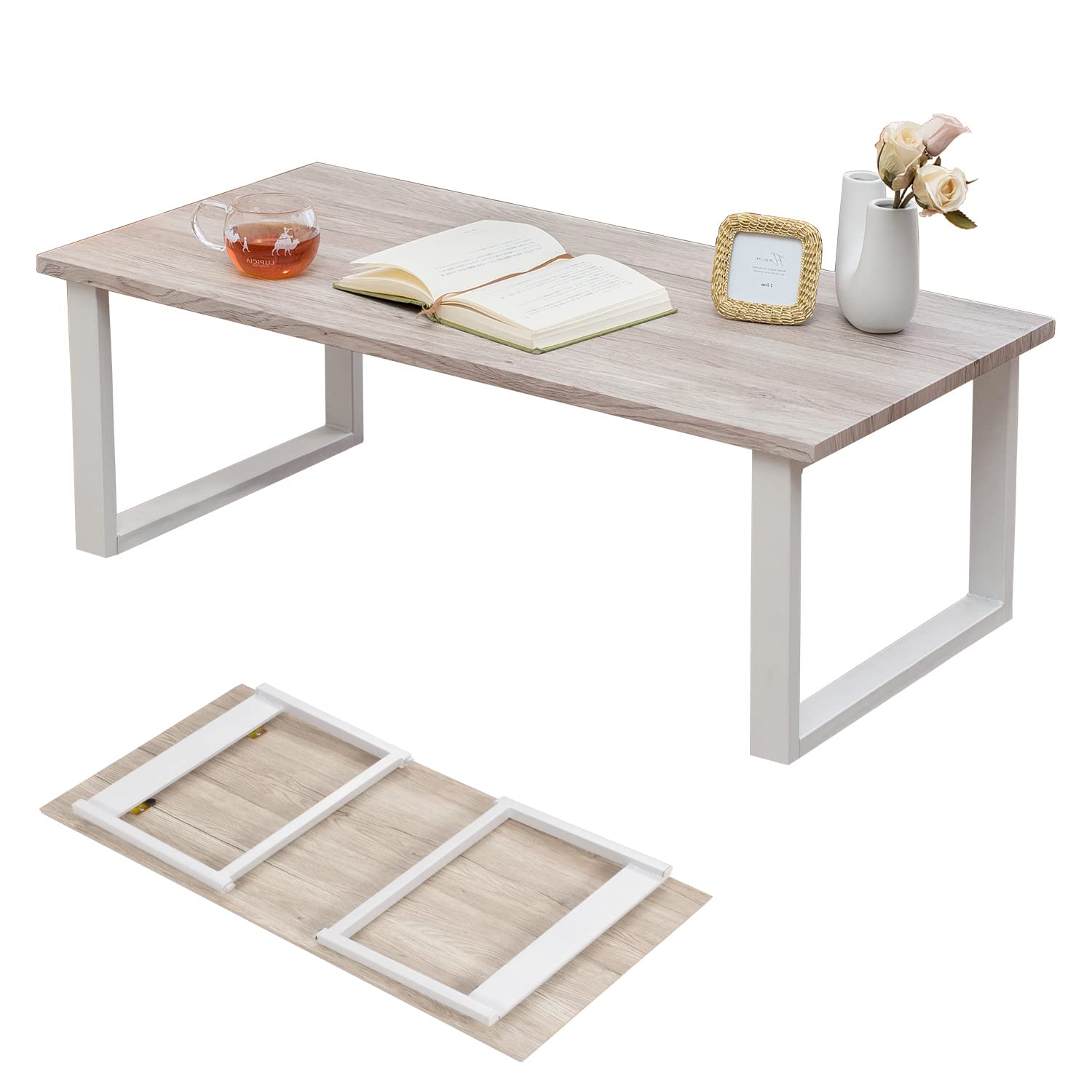 萩原(Hagihara) ローテーブル センターテーブル 折りたたみ テーブル 机 【木目調天板×スチール脚】 インダストリアル リビング ソファテーブル 幅90 ホワイト 白 頑丈 LT-4396WH | Bloomia