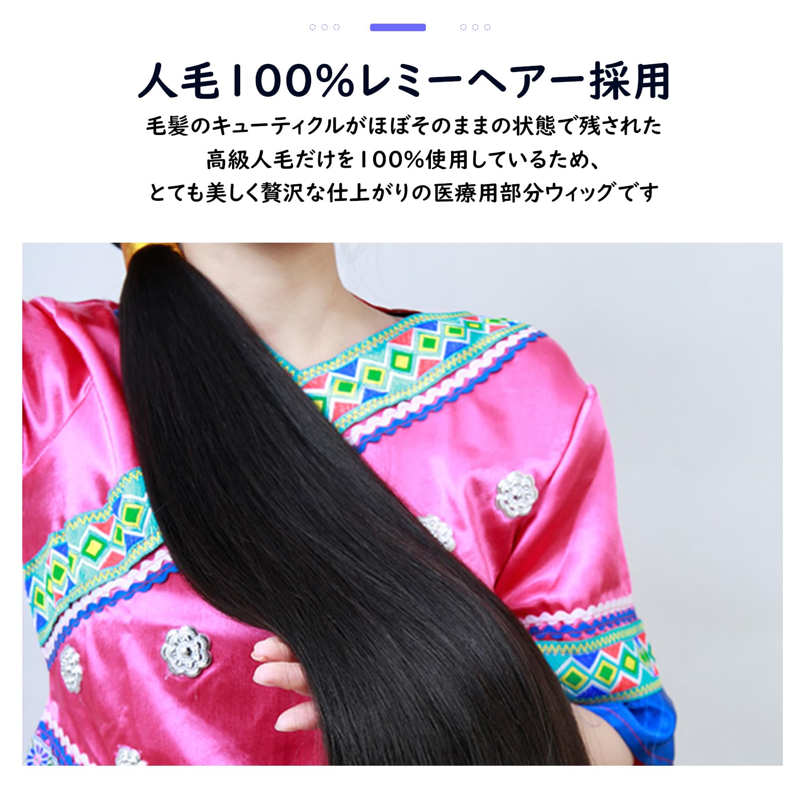 特徴 通気性, 軽量, 人毛100%, 総手植え, 耐熱