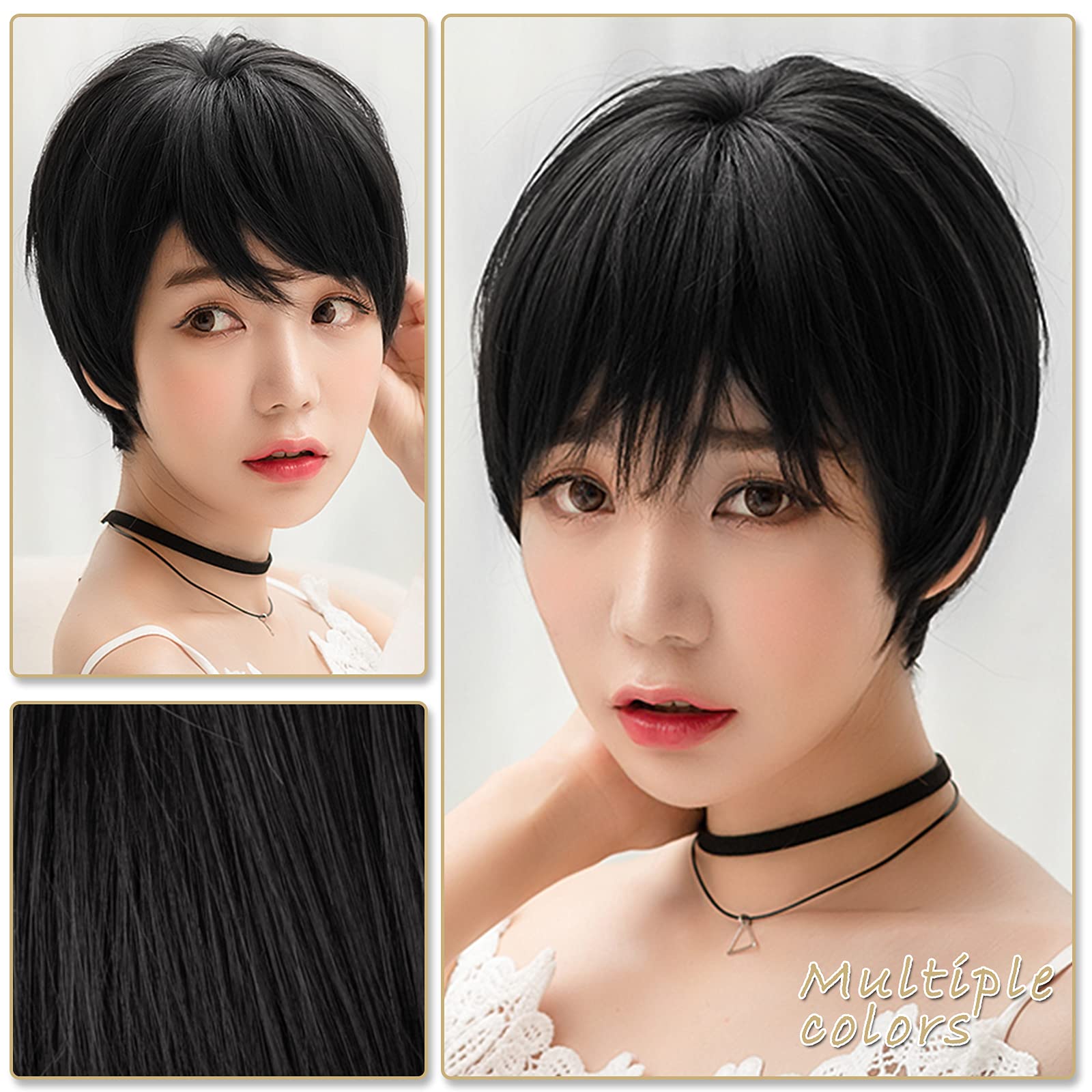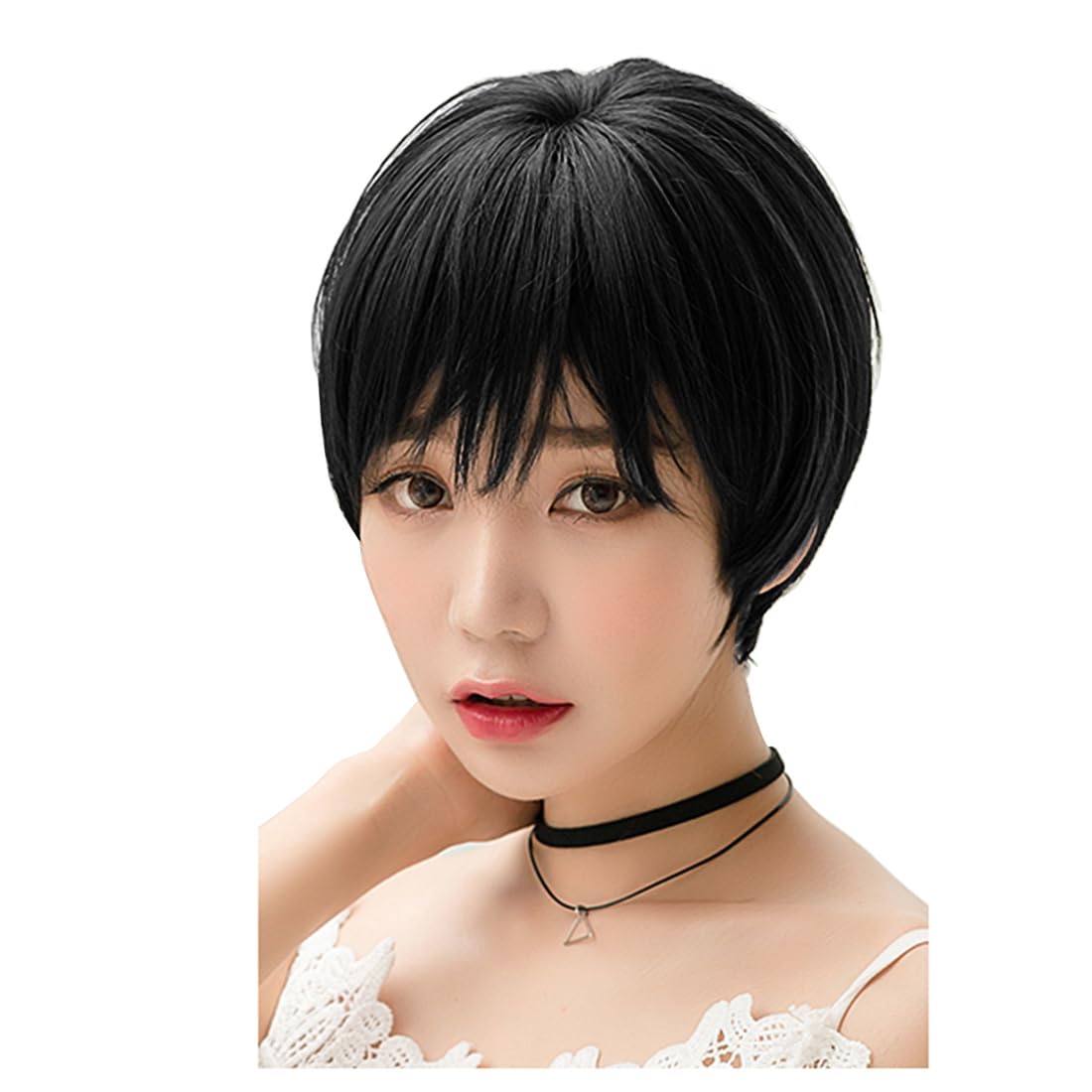 FESHFEN ウィッグ ショート フルウィッグ 女性ウイッグ ボブ かつら wig レディーズ 手植え 自然 耐熱 ウィッグ フリーサイズ ハロウィン ネット付き 黒