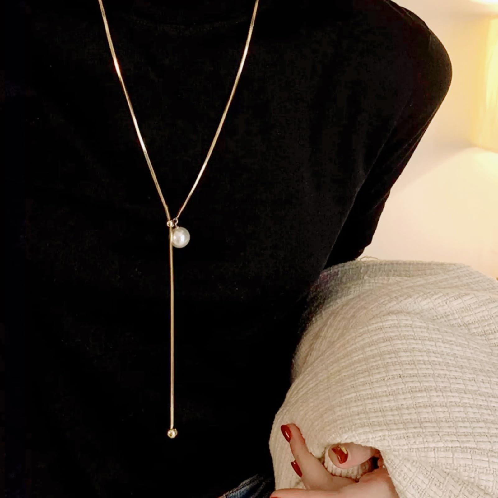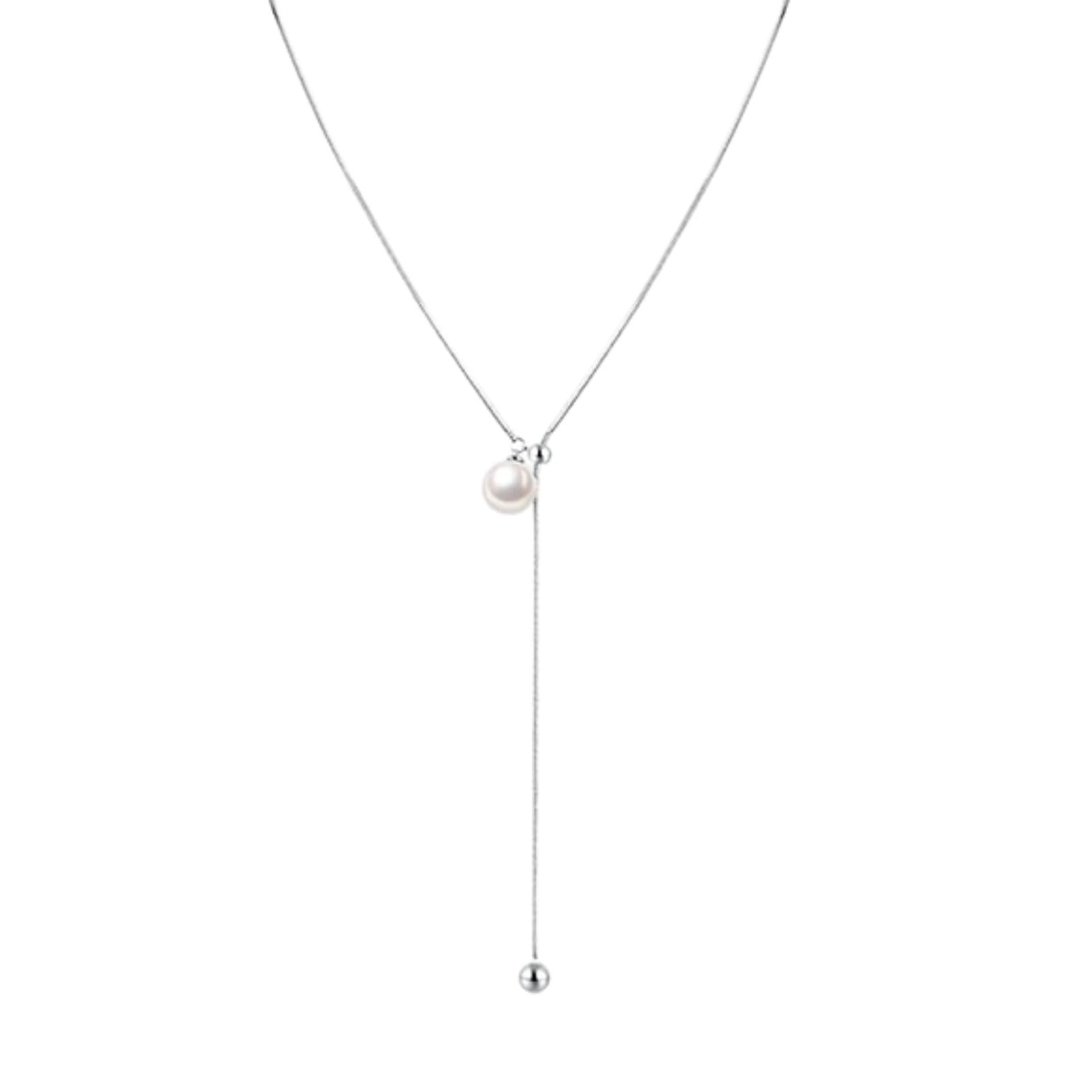 パールとメタルボールのスライド式Y字ロングネックレスです。