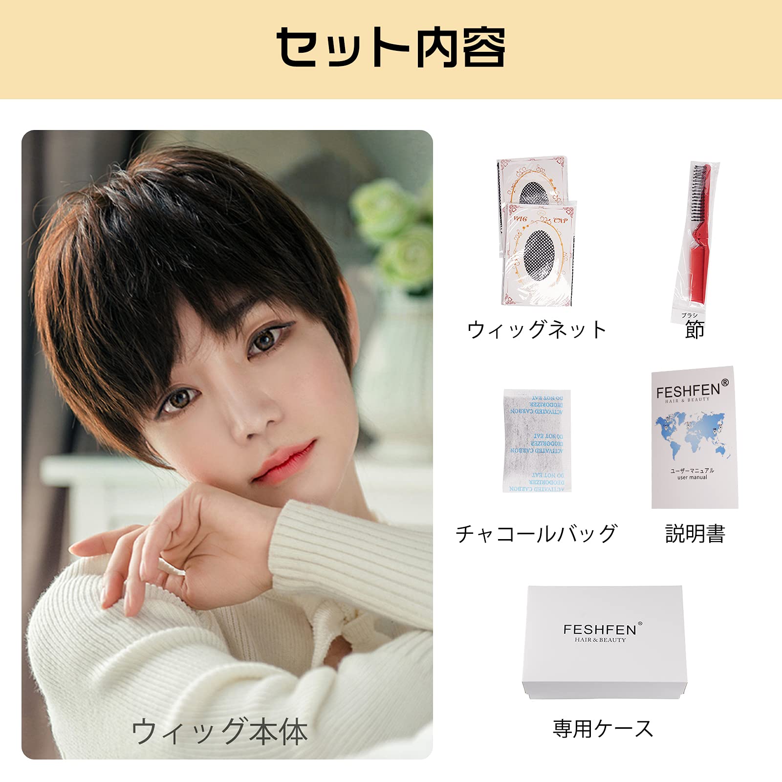 FESHFEN ウィッグ ショート フルウィッグ 女性ウイッグ ボブ かつら wig レディーズ 手植え 自然 耐熱 ウィッグ フリーサイズ ハロウィン ネット付き チョコブラウン | Bloomia