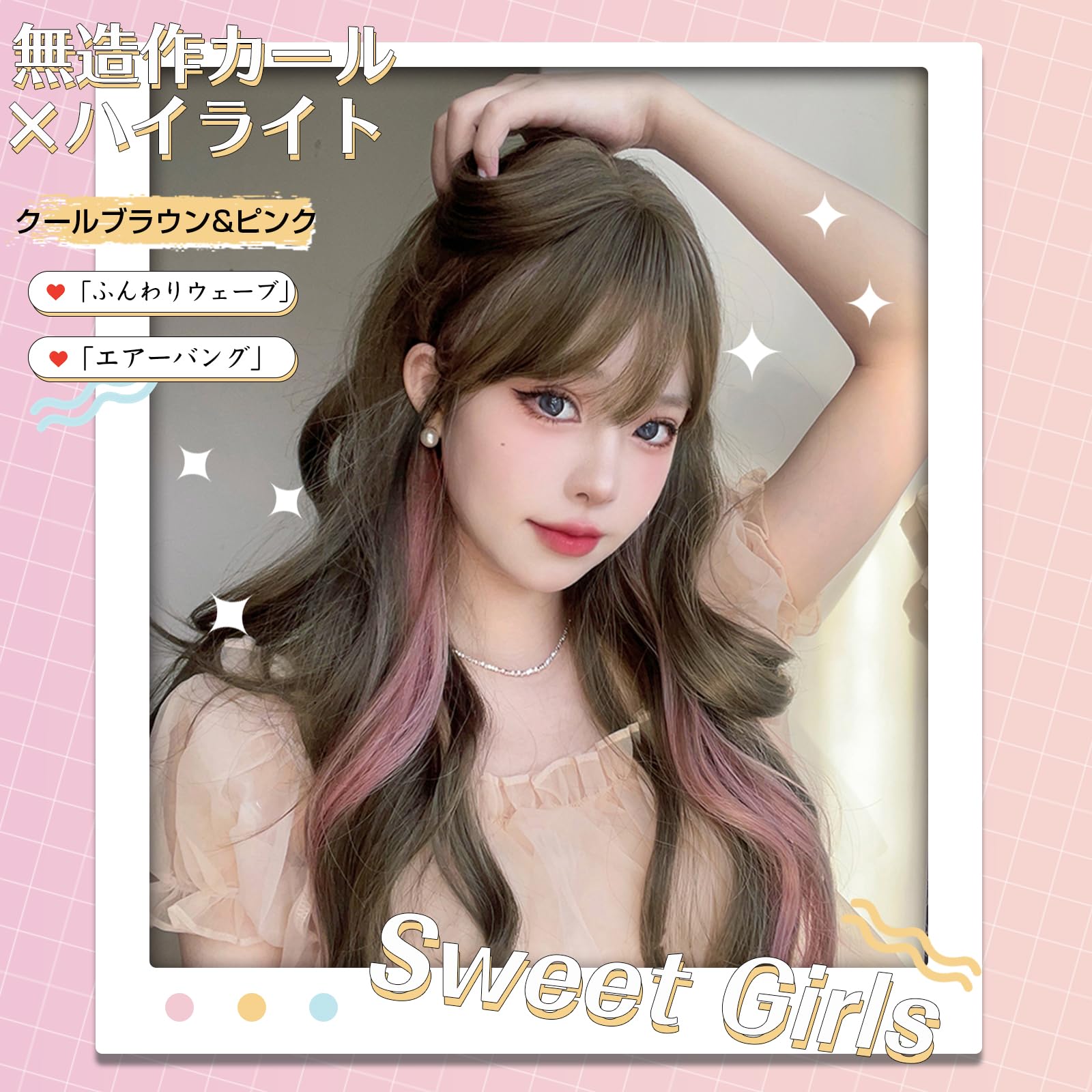 FESHFEN ウィッグ ロング カール インナーカラー ウィッグ 巻き髪 ウェーブ フルウィッグかつら 自然 女装 レディーズ グラデーション ほつれカール wig 原宿系 カツラ インナー ぱっつん ファッション コスプレ ハロウィン ロリータ 小顔 人気 可愛い 耐熱 ネット/櫛付き ツートン クールブラウン&ピンク | Bloomia