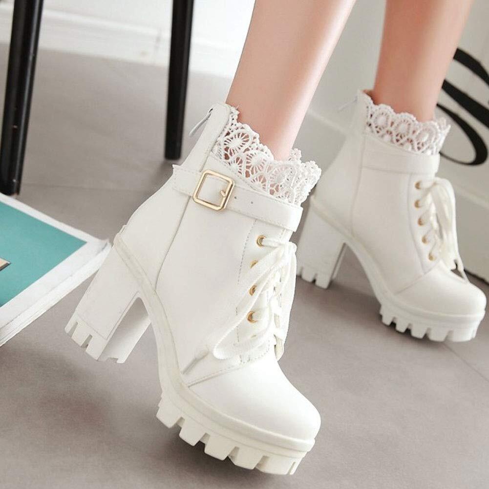 [Guoyupika] ショートブーツ レディース コスプレシューズ レース付き 黒 白 PU ショート丈 ハイヒール レースアップブーツ おしゃれ 無地 歩きやすい 通勤 通学 大きいサイズ | Bloomia