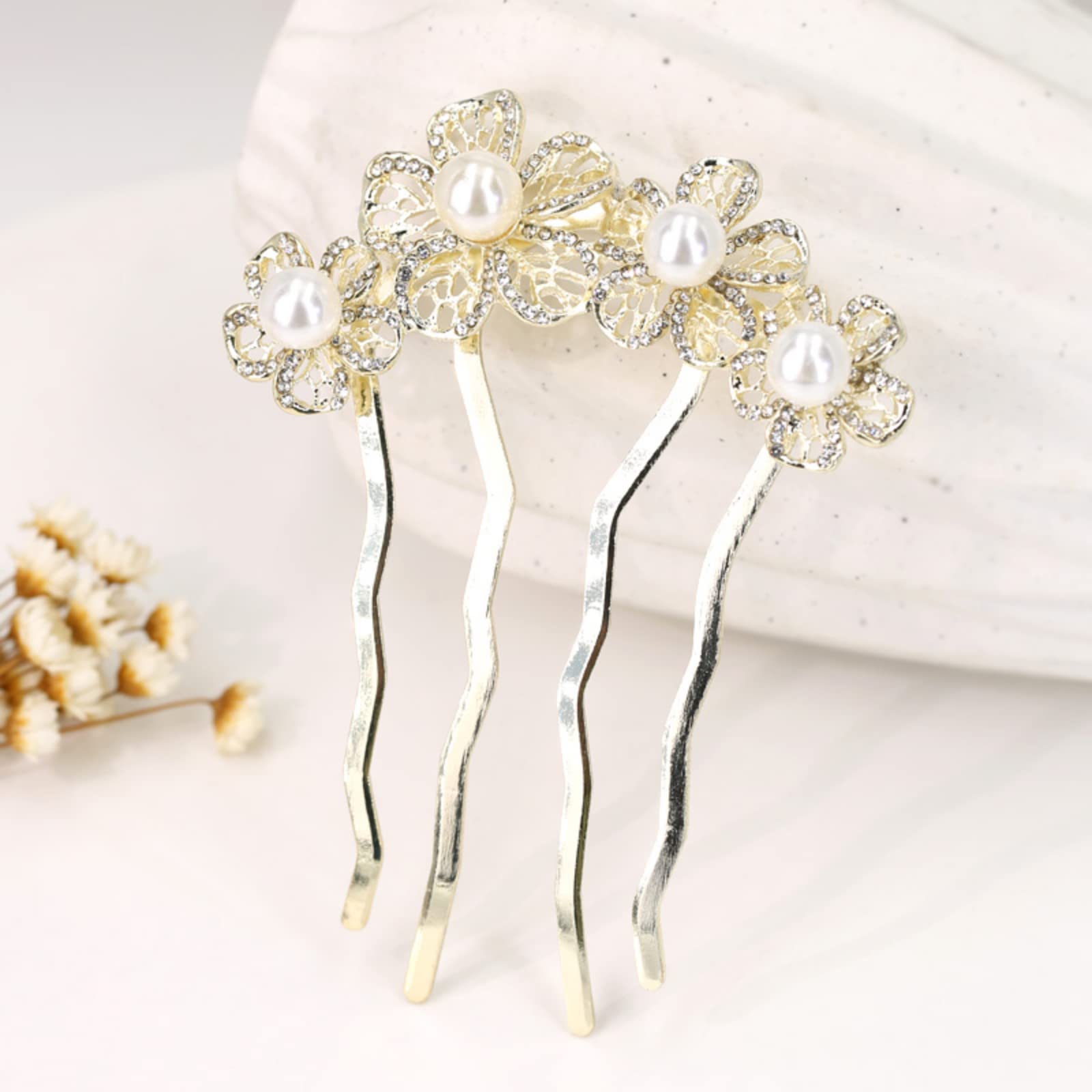 EZ PEACH 簪 かんざし 夜会巻きコーム 髪飾り 和装 パール ビジュー フラワー 花 ヘアー コーム 艶やか 髪飾り かんざし 結婚式 着物 成人式 発表会 (梅-Gold) | Bloomia