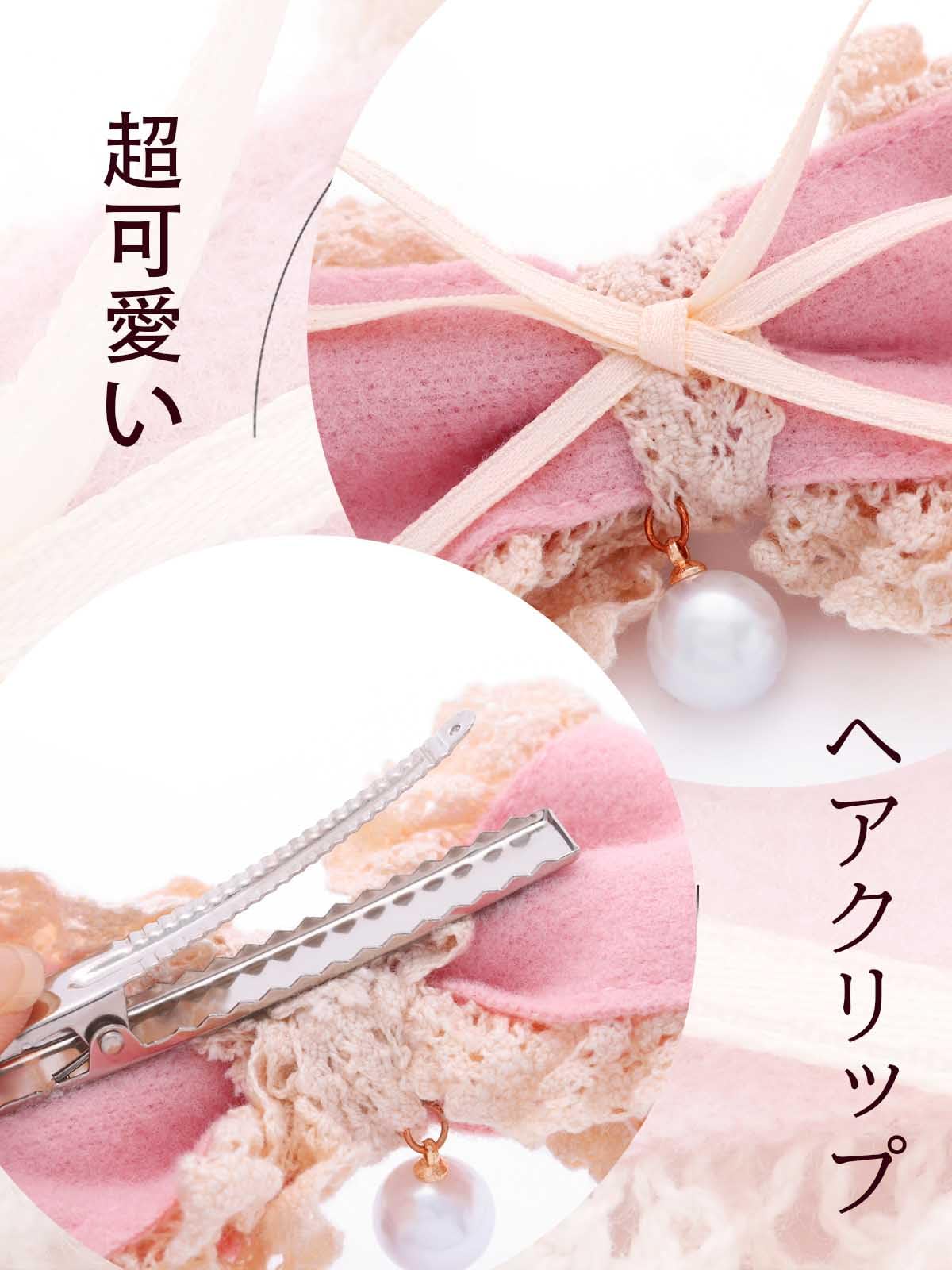 リボン ヘアクリップ ピンク レース 小さめ 髪留めクリップ かわいい ヘアピン 前髪クリップ 発表会 卒業式 誕生日 結婚式 女性