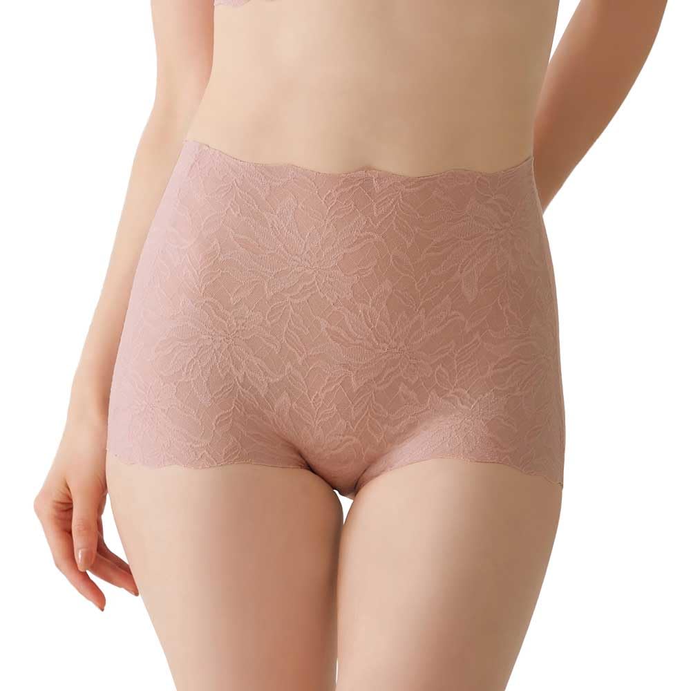 生地端にゴムがないカットオフストレッチレースで肌への圧迫は少なく、お腹周りとヒップラインをしっかりカバー。 ヒップ下に段差が出来にくく、痩せ見え効果あり。