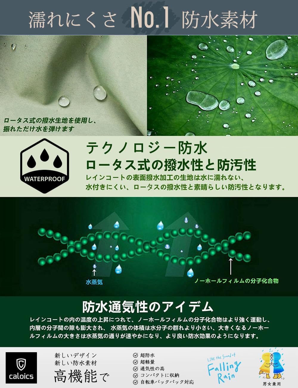 【防水素材を使用した最新技術のレインコート】: Caloics レインケープは高品質ポリエステル生地製で、テントや傘、レインコートなどに広く使用されています。耐久性、通気性、軽量性に優れ、洗練された外観を持っています。