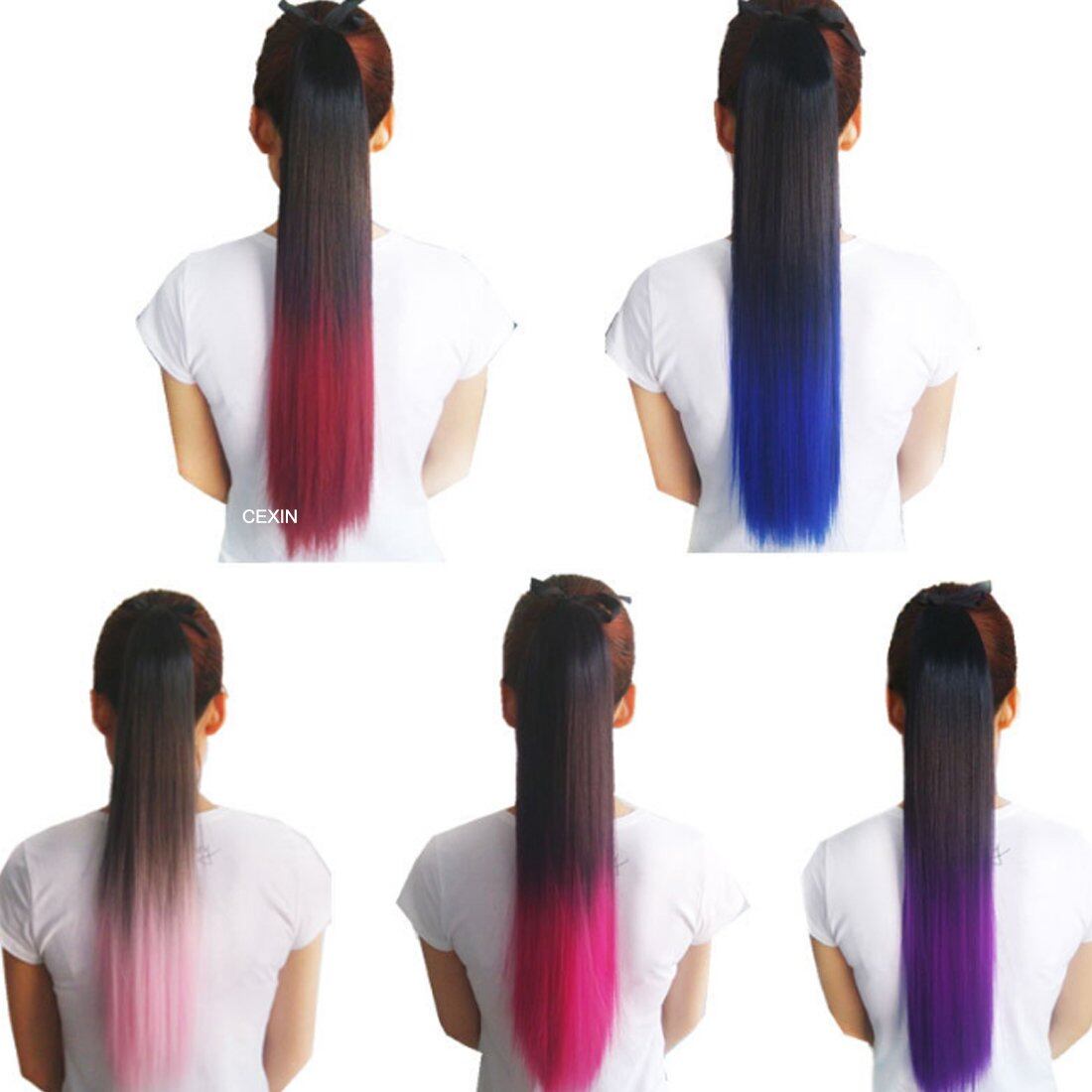 LESUN 部分かつら つけ毛 ウィッグ ポイントウィッグ ポニーテールウィッグ ツートン エクステンション ロング ストレート グラデーションカラーエクステ 取り付け簡単 日常 ヘアカラー6色 長さ:55センチ 多カラーバリエーション (ブラック+ローズレッド) | Bloomia