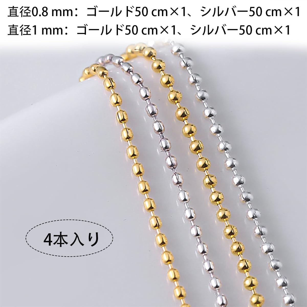 ネイルパーツ ネイル チェーン 4本入り 4種類 50cm 極細 ボールチェーン 裁断可能 0.8mm+1mm ネイルデコレーションパーツ ネイル ボールチェーン ネイルアート DIY 工芸品 ファッショ オーナメントン ネイルアート アクセサリー パーツ 手芸 ゴールド+シルバー | Bloomia
