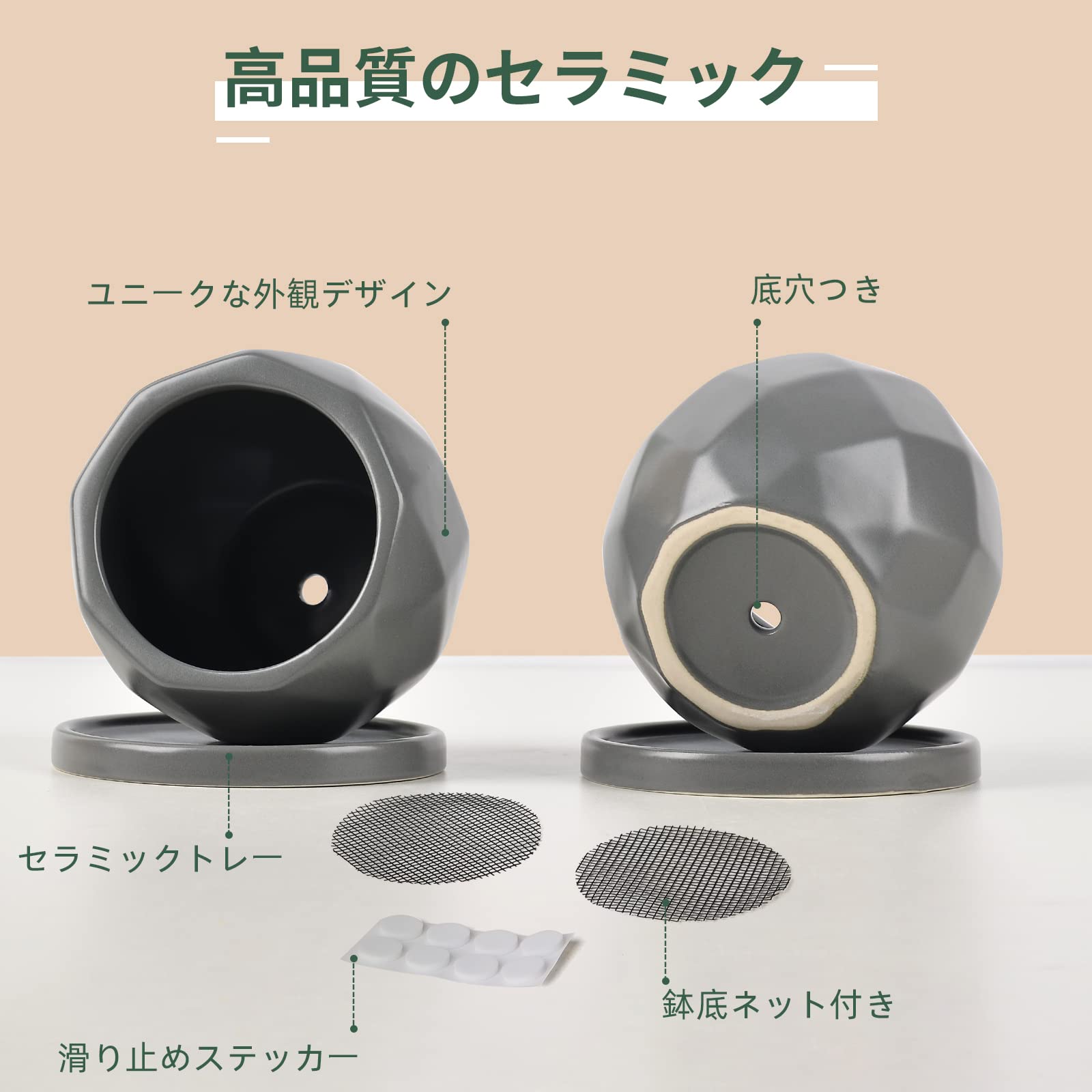 Umlaca 植木鉢 多肉植物 鉢 陶器鉢 プランター 小型 底穴あり ミニ鉢植え サボテン鉢 ミニ 植木鉢 おしゃれ 陶器受け皿付き 鉢底ネット付き 2点セット 植物なし (グレー) | Bloomia