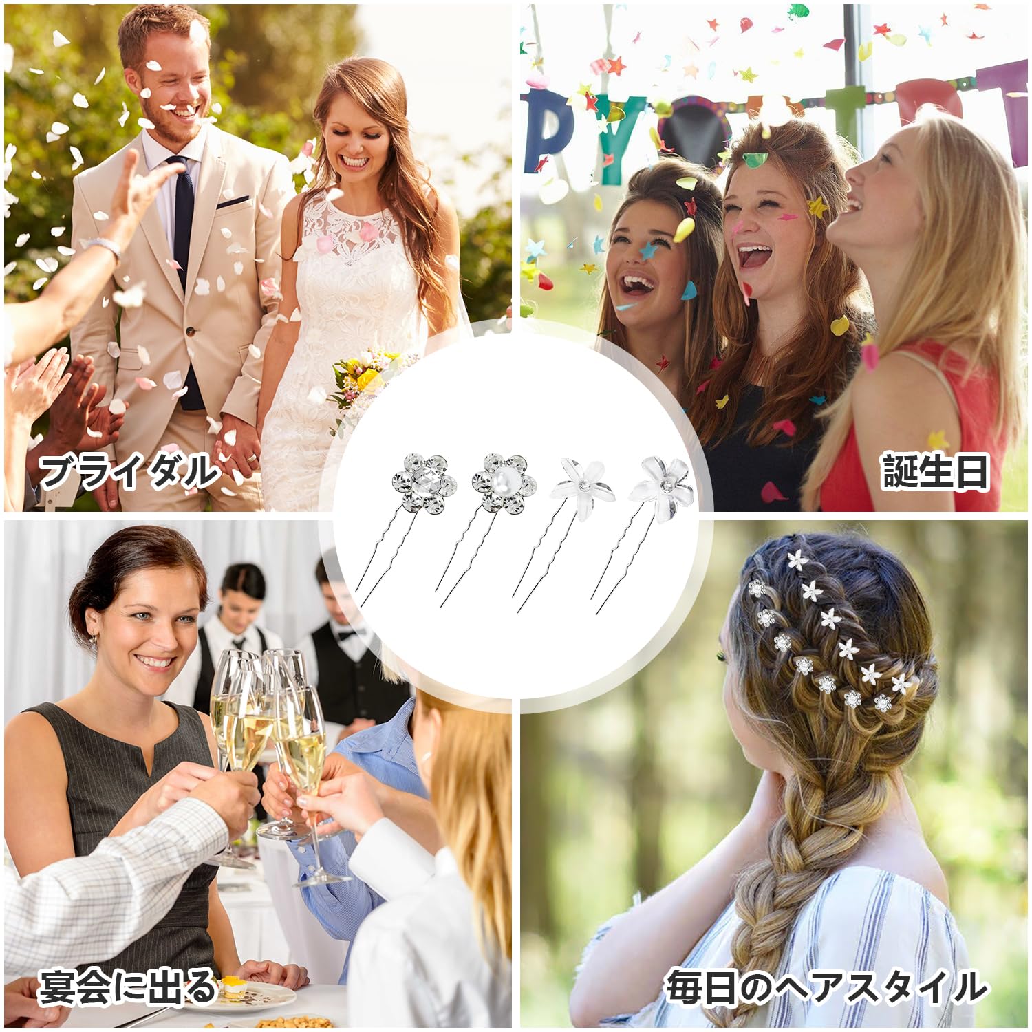 【材質】ワイヤー、アクリル、人工パール、 合金などの環境に優しい素材で作られております。仕上がりは精巧で、ダイヤモンドが落ちる心配はありません、ヘアピンの外観は非常に繊細で光沢があります。