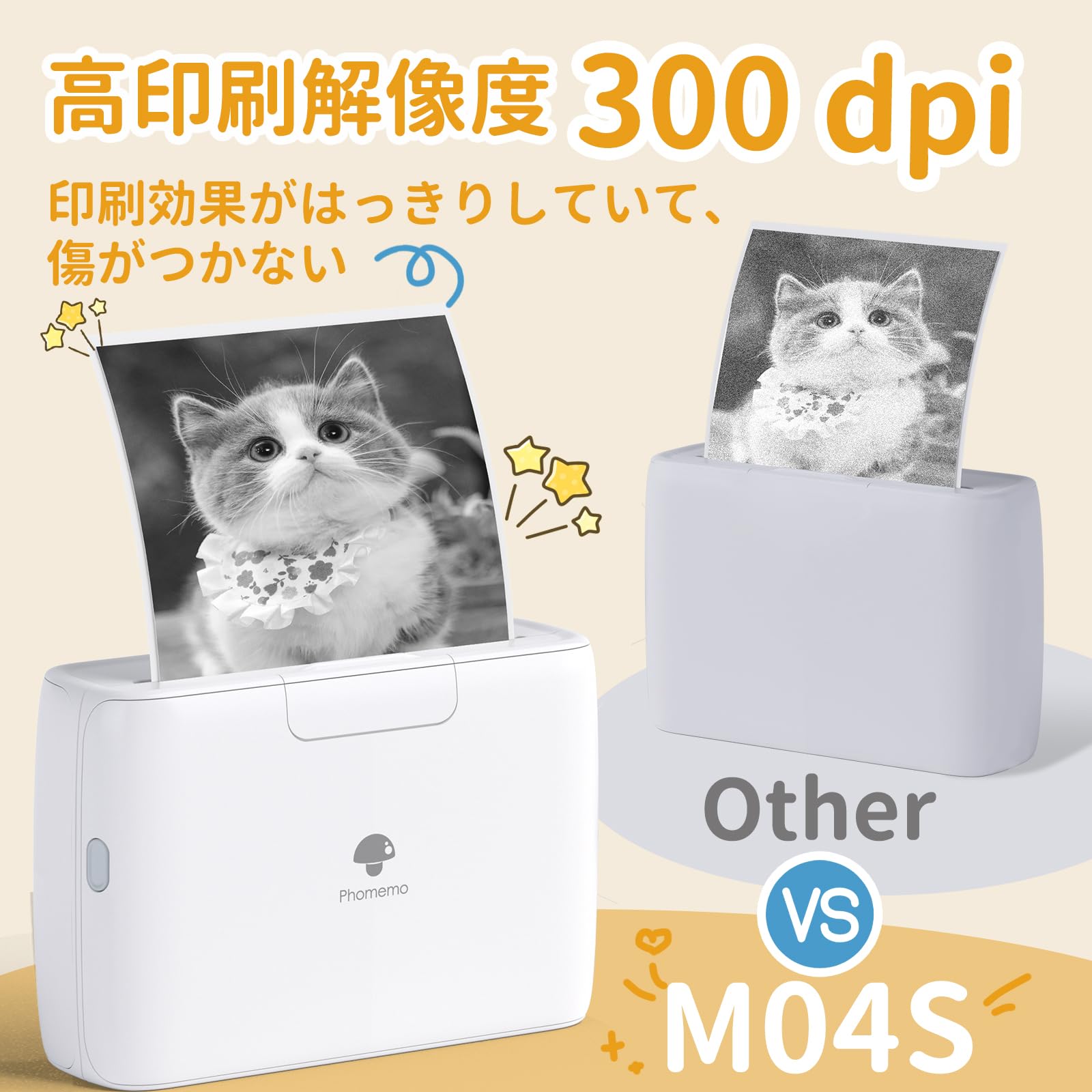 Phomemo M04S サーマルプリンター ミニプリンター スマホ対応 モバイルプリンター 53/80/110mm感熱紙対応 300dpi フォトプリンター メモプリンター Bluetoothプリンター 付箋プリンター シールプリンター 写真/ノート/メモ/クリスマスギフトに最適です 110mmホワイト感熱紙1巻付属 日本語対応 | Bloomia