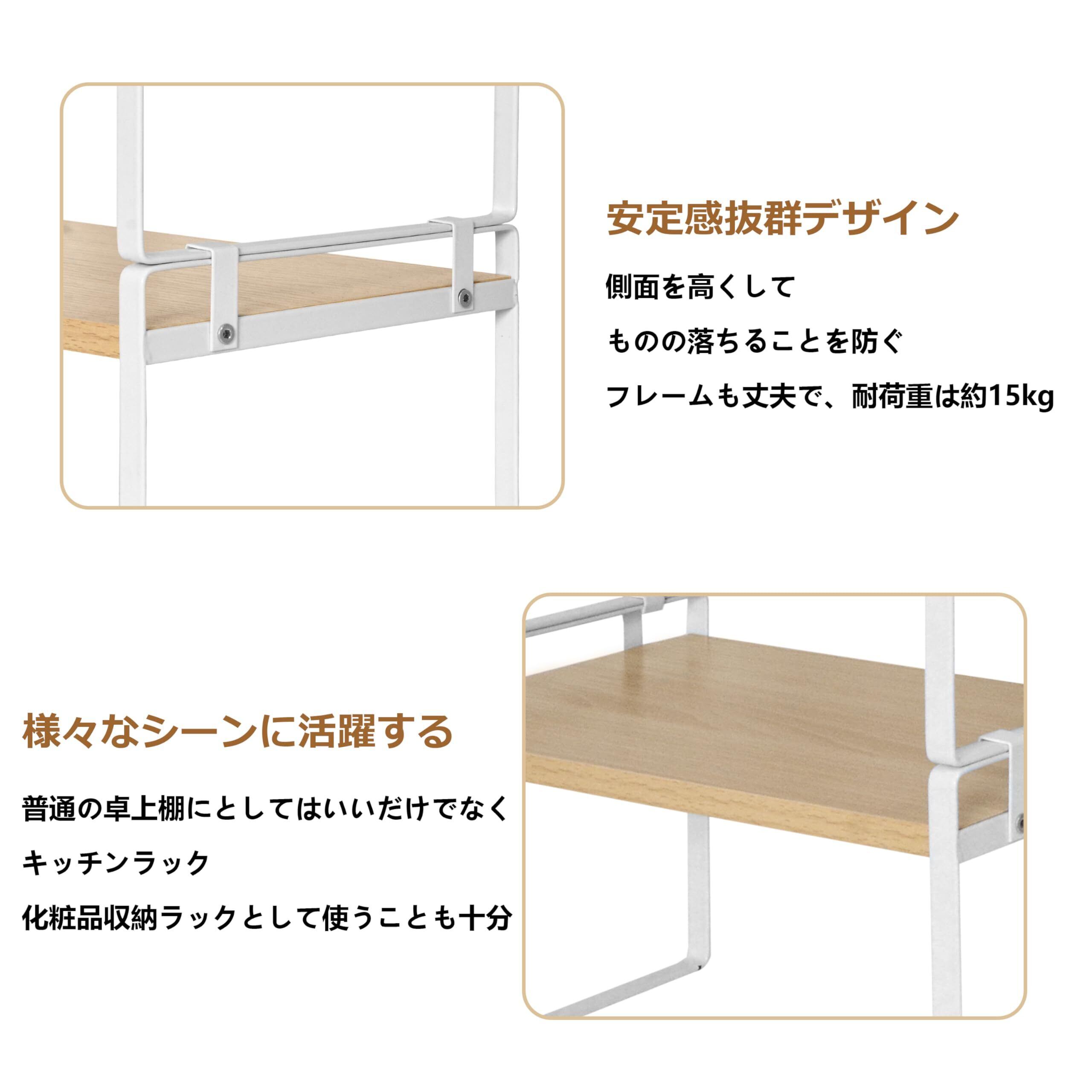 【収納力抜群】この卓上棚は2段の設計で、三段の収納が実現でき、卓上の小物が一斉にきれいに放置できます。それ以外、毎段分別使用も可能で、ご自由に組みあわせて使用ください。