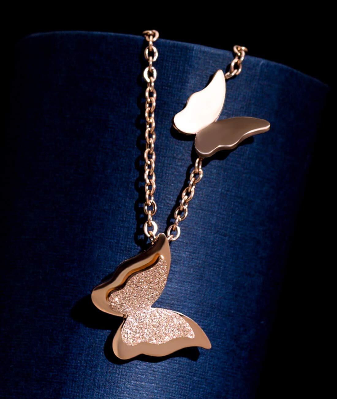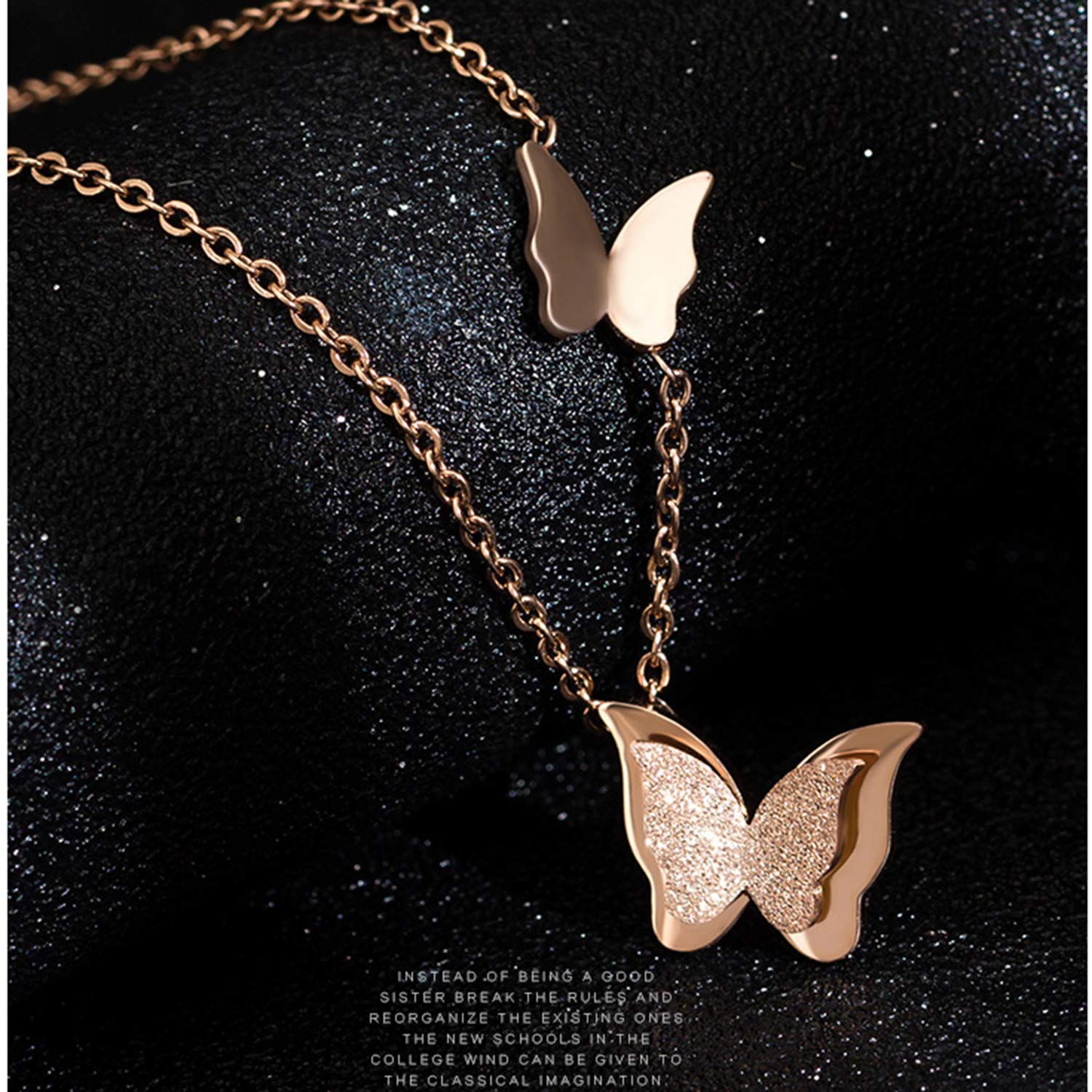 CHLOEOS 蝶ネックレスバタフライレディースシンプルステンレス大人可愛女性18Kゴールドジュエリー(ピンクゴールドネックレス)