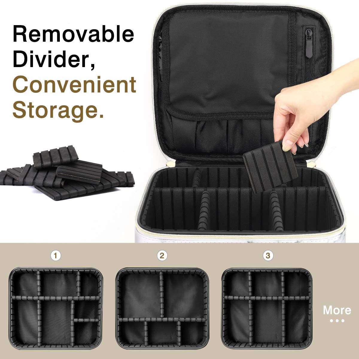 プロ用 メイクボックス Luxspire コスメボックス メイクブラシバッグ 化粧ポーチ コスメポーチ メイクポーチ 仕切り 持ち運び 防塵 收納 置き方調整可能 通勤・出張・旅行用 機能的收納 大容量 置き方が調整できる 衝撃吸収 化粧品収納 収納ケース 大型 母の日 White Marble | Bloomia