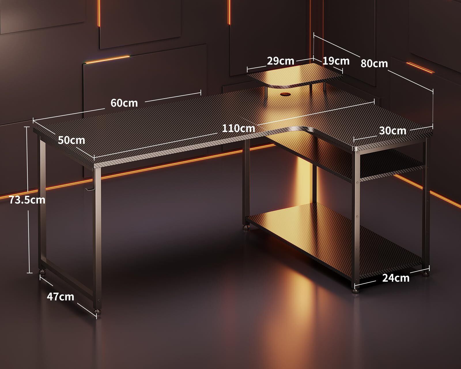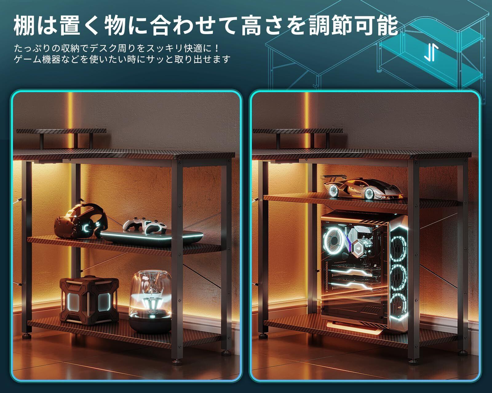 ODK ゲーミングデスク l字 パソコンデスク 幅110 机 デスク desk 棚付き 在宅勤務 pcデスク 桌子 勉強机 L字型 組立簡単 カーボンブラック 右棚