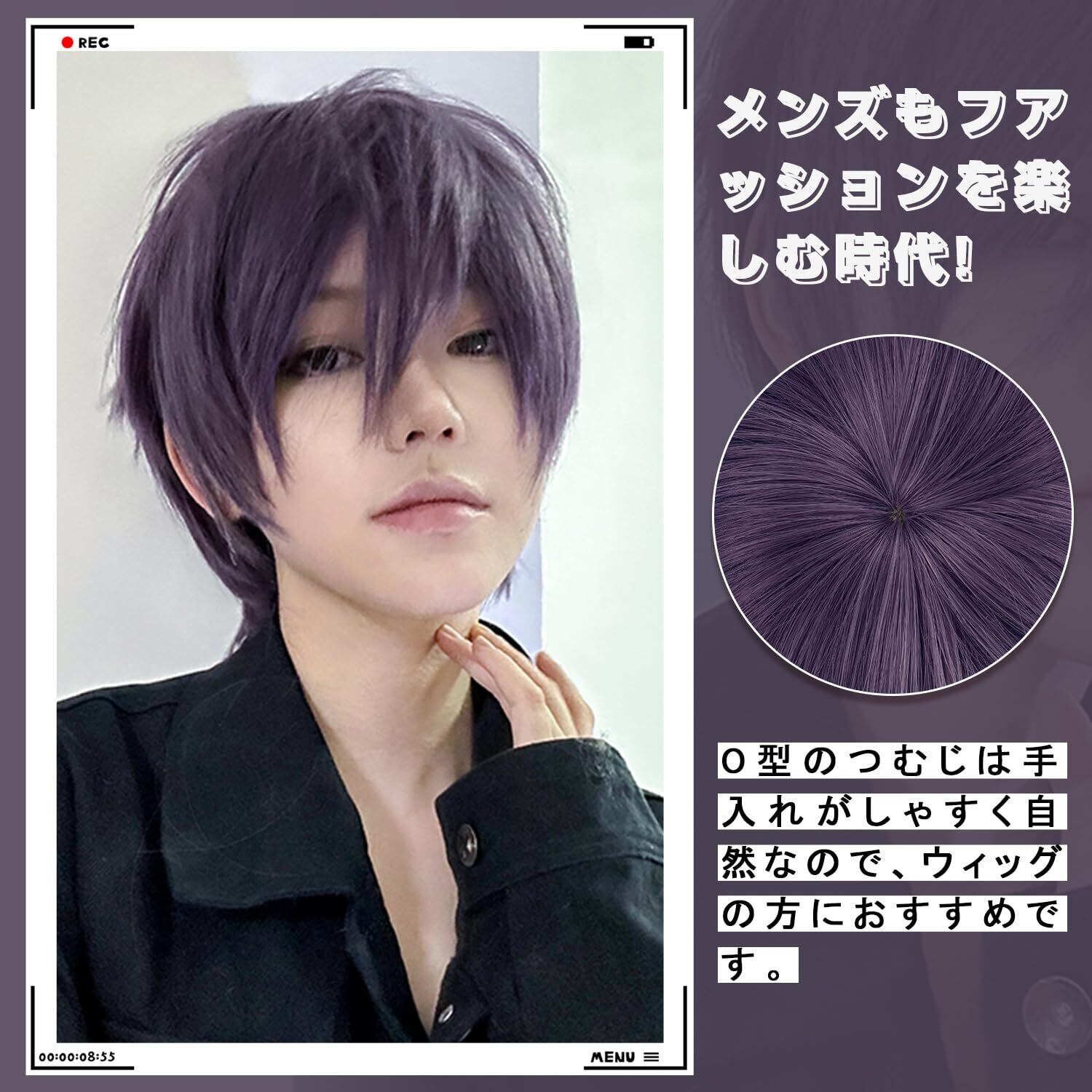 Sofeiyan ウィッグ かつら メンズ ショート ボブ 自然 男装 原宿 フルウィッグ 耐熱 小顔 人気 イケメン ファッション 男女兼用 コスプレ 男性 イメチェン 学生 通勤 パープル | Bloomia