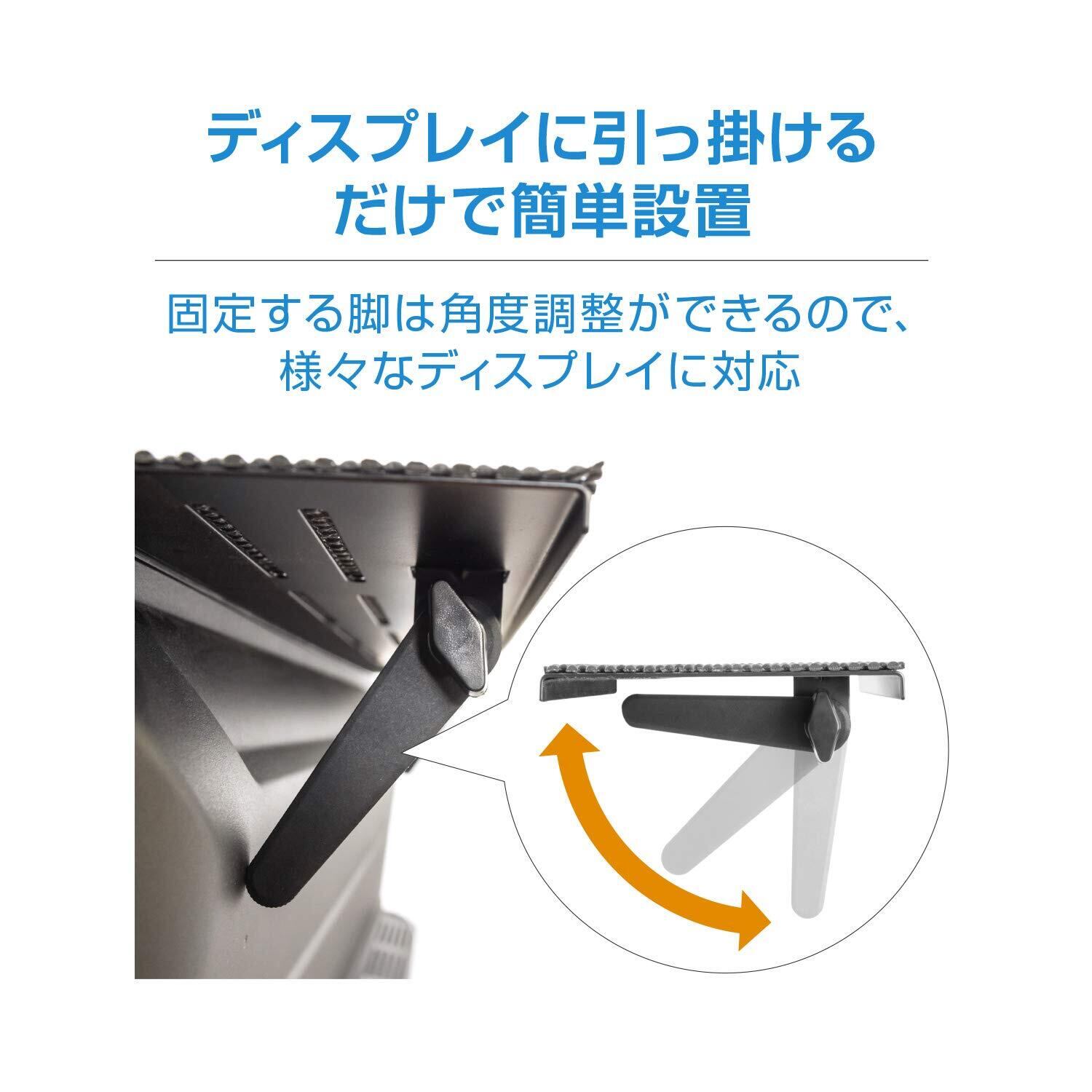 【工具不要で取り付け簡単】ネジなどの工具を使う必要がないので、設置作業が苦手な人でも簡単に取り付けられます。ボードを固定する脚を角度調整するだけで、様々な厚みのモニターに対応することができます。