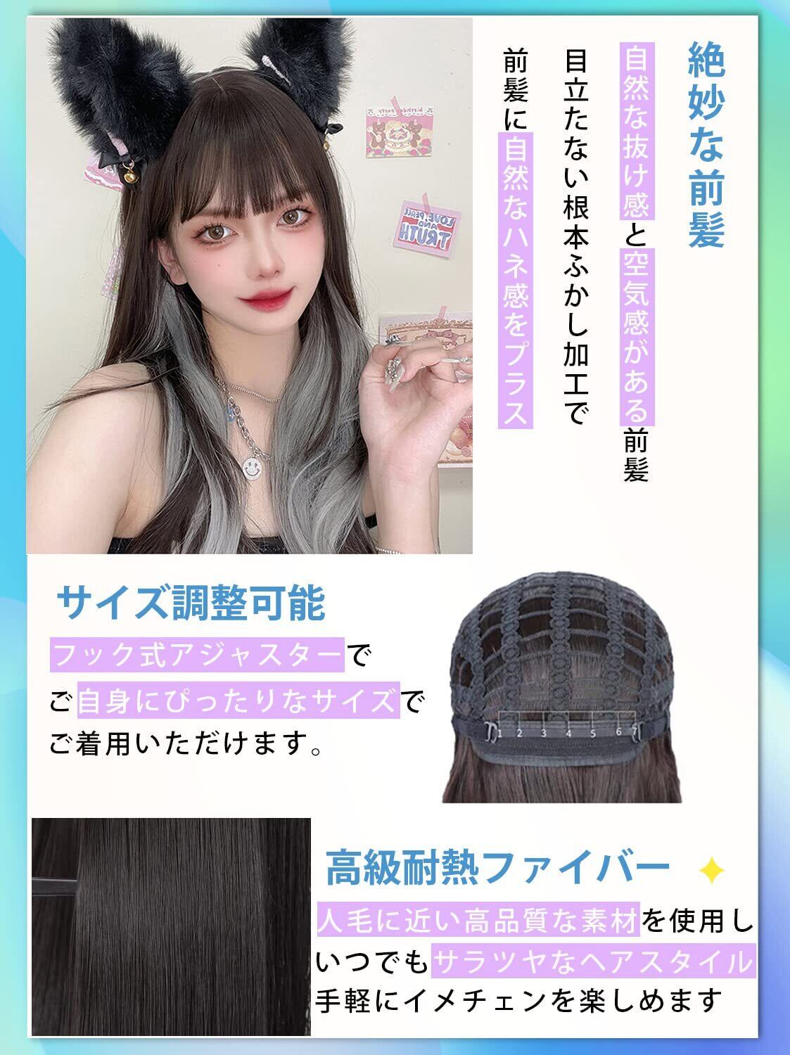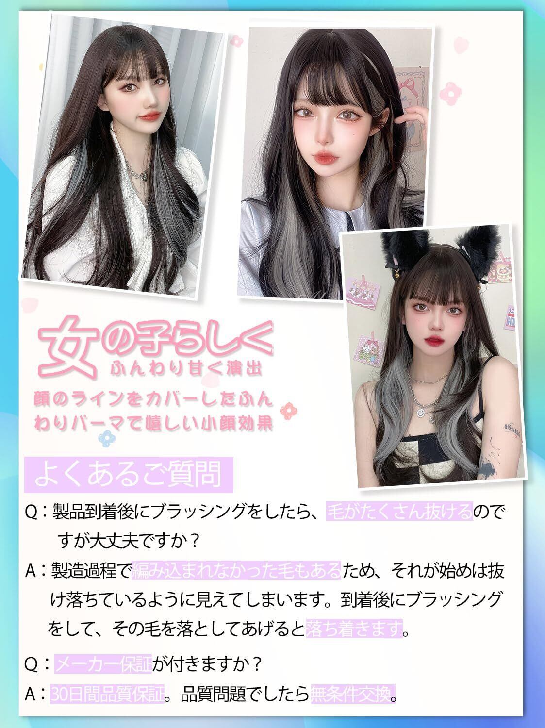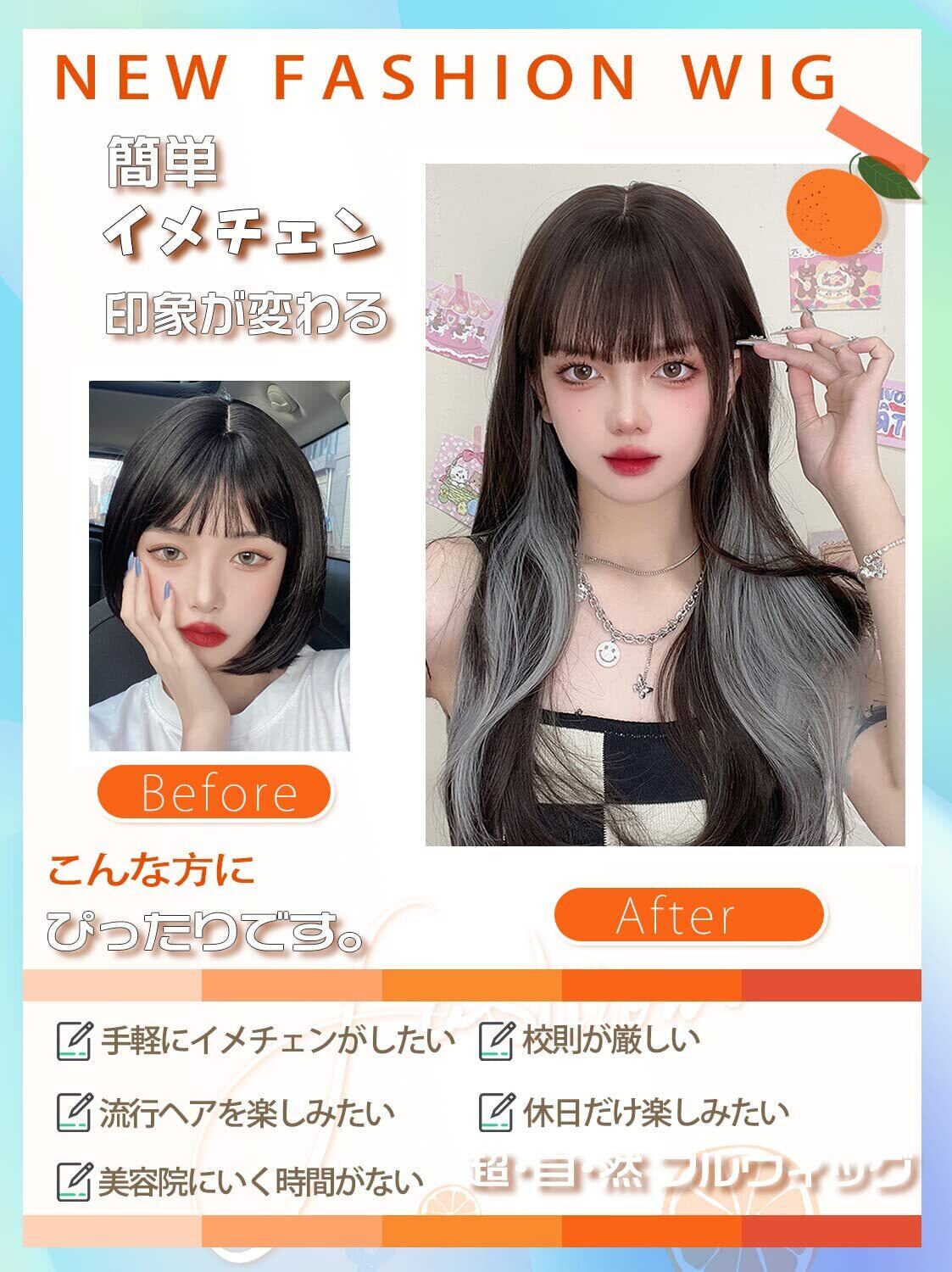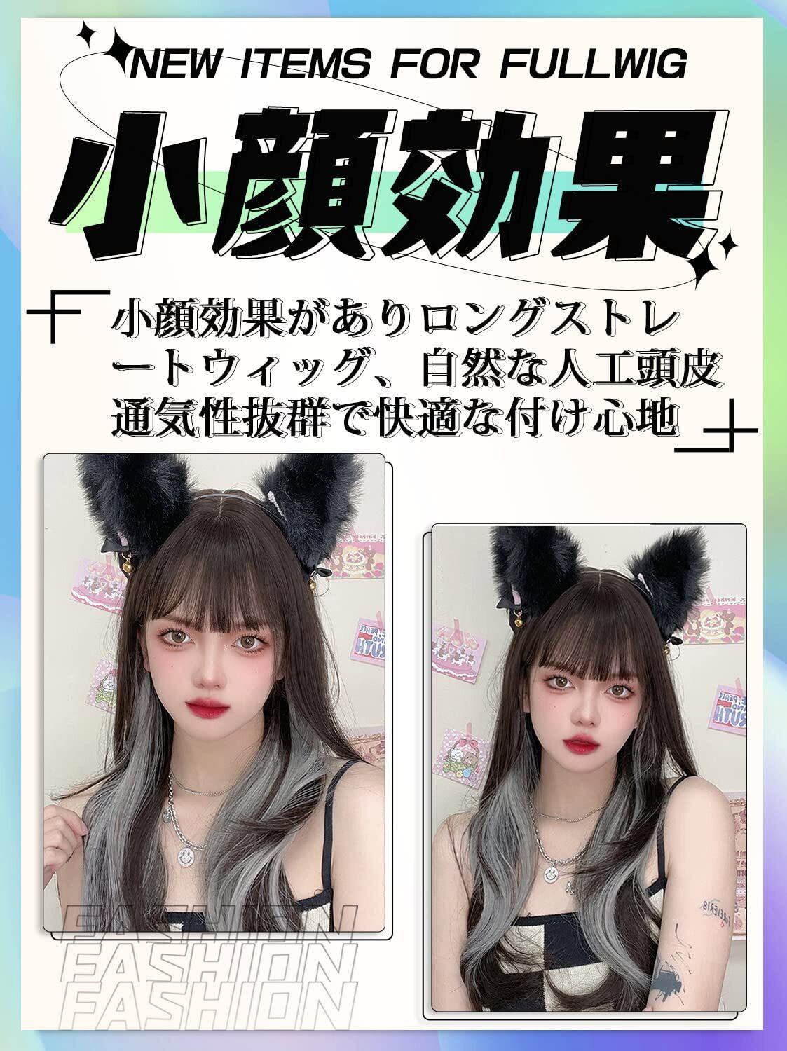 ウィッグ ロング ストレート ウイッグ セミロング 黒髪 インナーカラー 女装 フルウィッグ wig 耐熱 ロリータ コスプレ ウィッグ 自然 かつら ギフト ボックス 付(黒茶&インナーグレー) | Bloomia