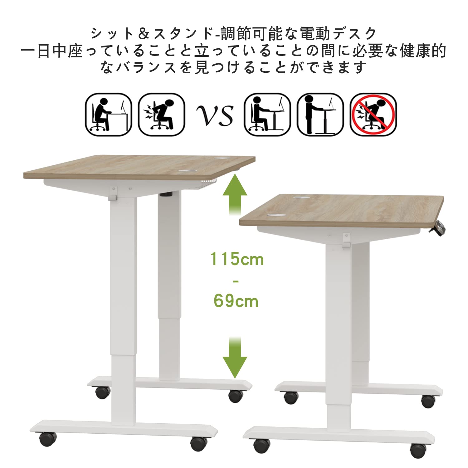 【電気で高さ調節 】この机は、「⮝・⮟」ボタンを押すと、高さを69-115CMに調整できます。 電気スイッチ操作、シンプルで便利!人間工学的な設計に適合しており、人によって身長のニーズに応じて、お希望の高さを調節します。