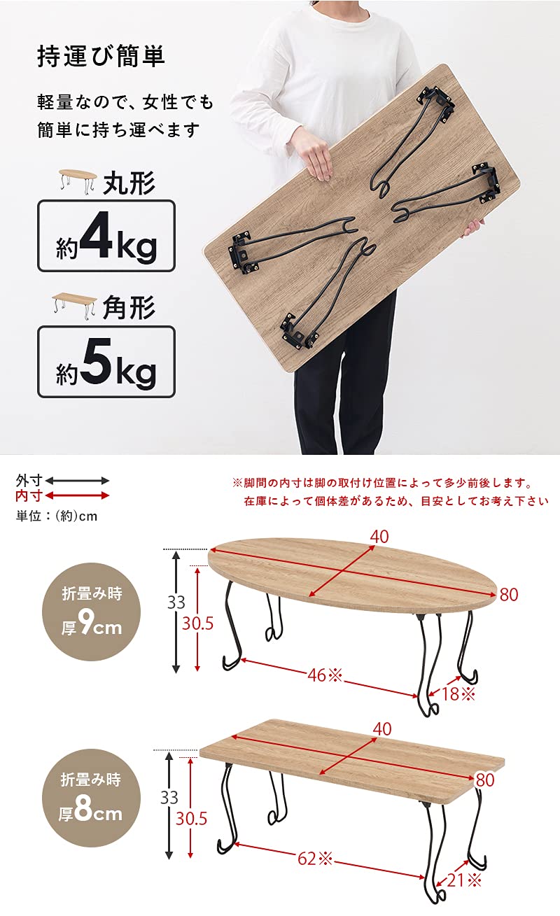 【折りたたみ式&軽量タイプ】:重量は約4kgと女性でも運びやすい仕様。模様替えやお掃除の際も簡単に移動していただけます。