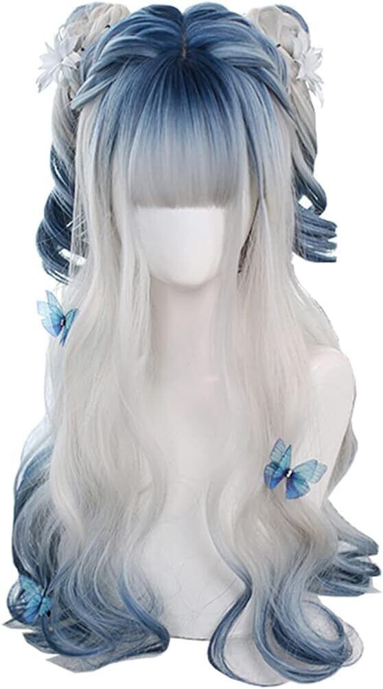 コスプレウィッグ ゴスロリ 白 青 ロング ロリータ 仮装 変装用 ハロウィン 演出 キャラクターアニメ ホワイト×ブルー 原宿 姫カット 女装 日常 グラデーション ウィッグ