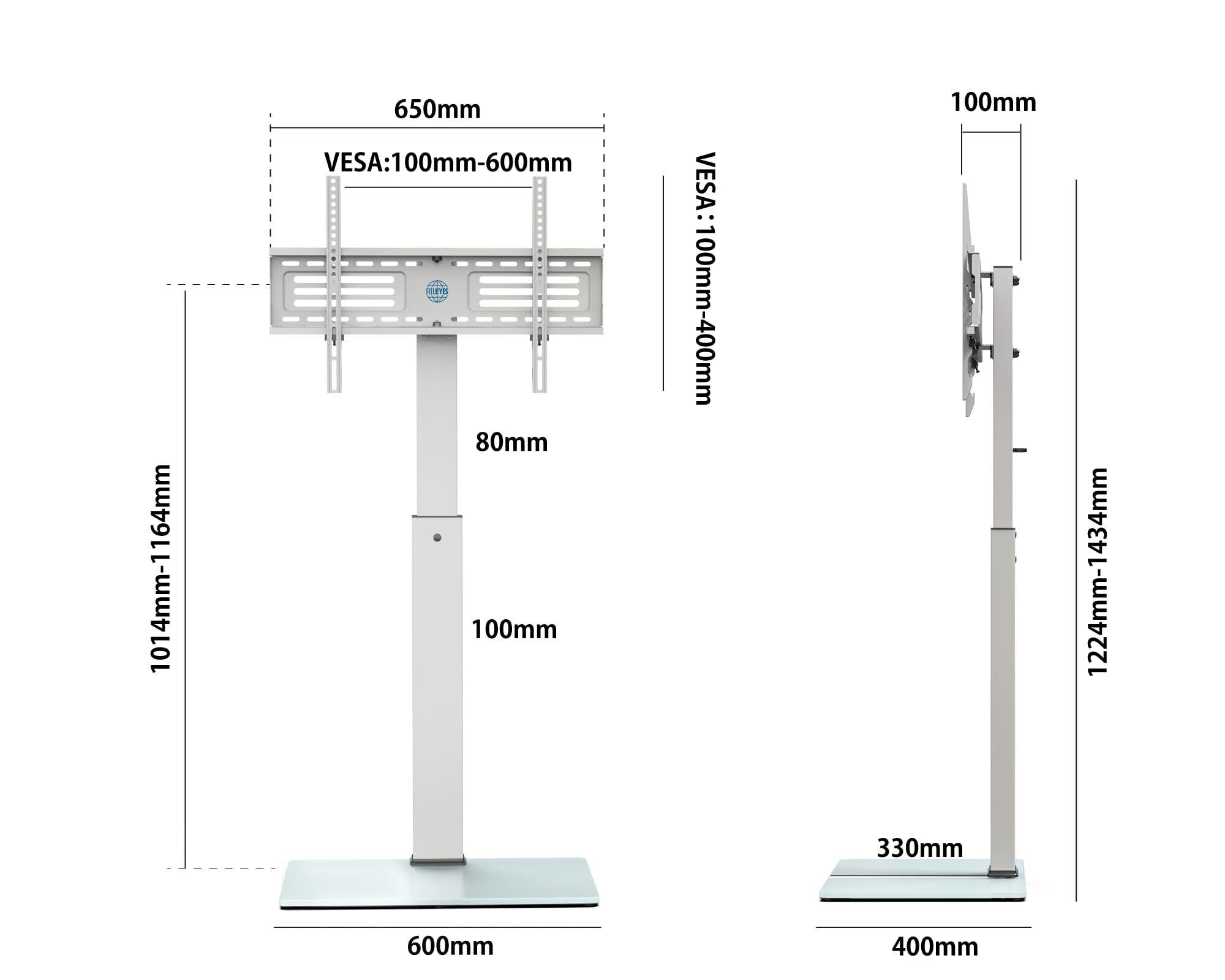【VESA規格対応】汎用性の高いVESA規格(テレビ背面のネジ穴間の距離)対応、最小限は100×100mm、最大限は600×400mmです。当製品が32~65インチのテレビやモニターに適応します。