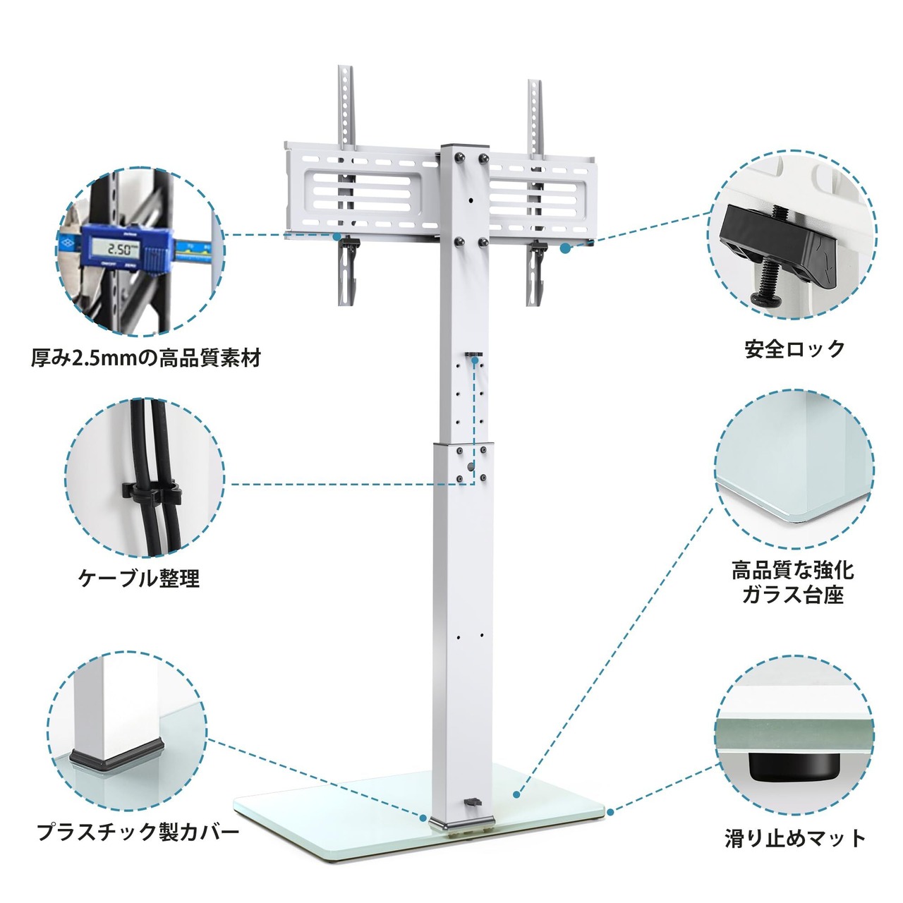 FITUEYES テレビスタンド 32-65インチ対応 壁寄せテレビスタンド 高さ調節可能 首振り可能 ホワイト TT107502GW