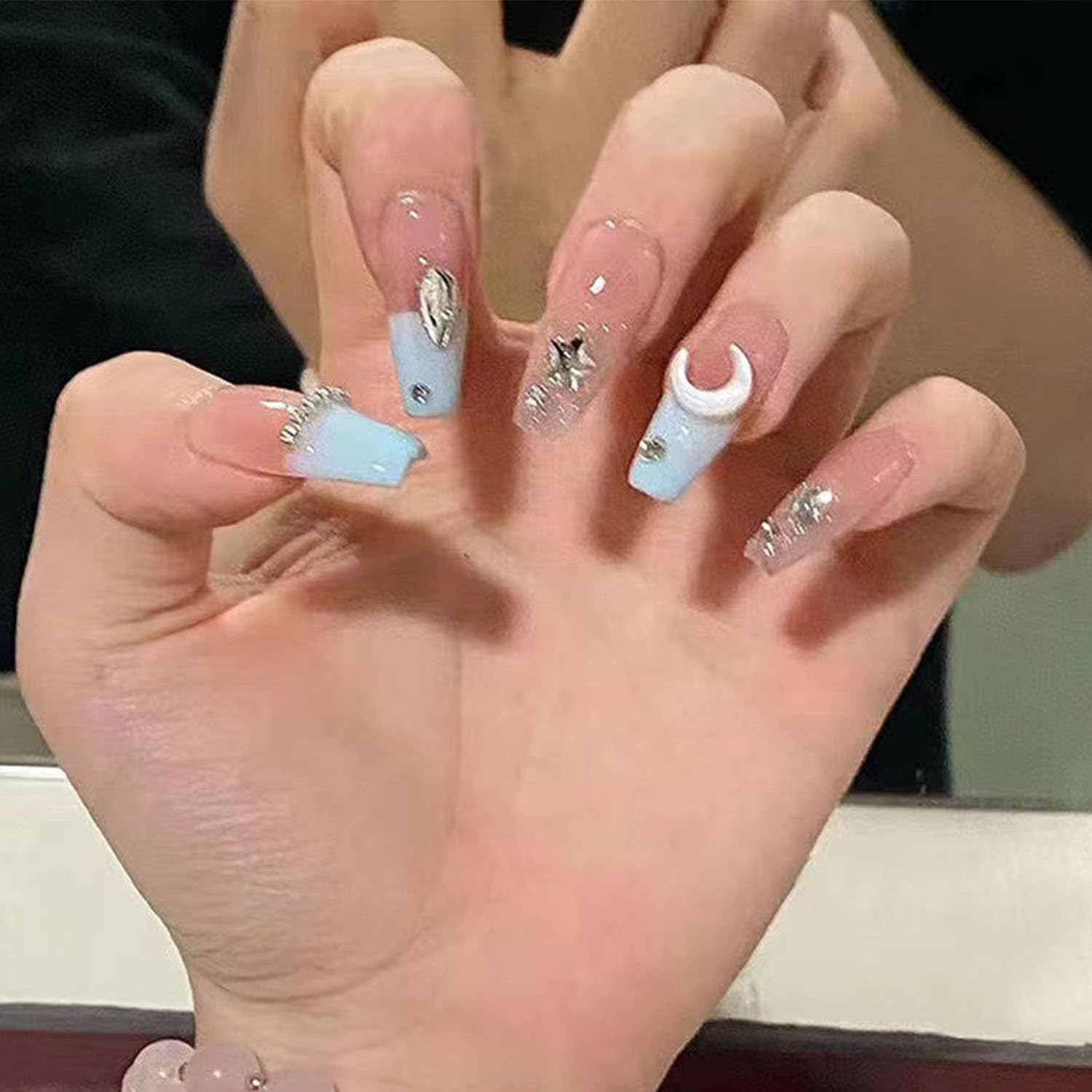 XUZOOネイルチップ 付け爪 短め 長め かわいい クリスマスネイルチップ おしゃれ 人気 シンプル つけ爪 クリスタル3D爪 手用 付け爪 シンプル ネイルシール つけ爪 ネイルツール 両面テープ付き 24枚 (星と月入り) | Bloomia