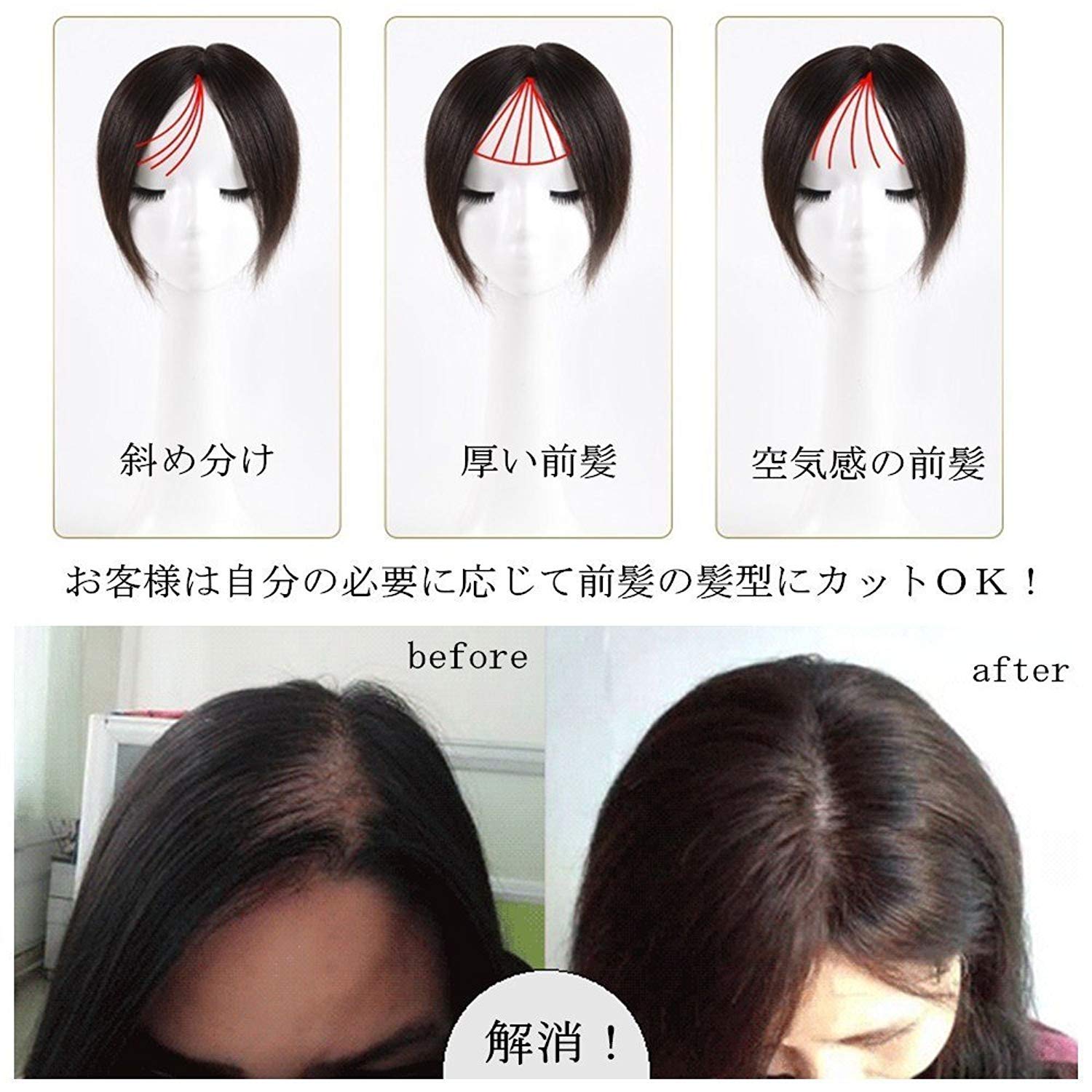 ヘアピース: 自由に分け目タイプ 好みによって、分け目の位置を選択します。 人毛なので染めることもできて自分に近い色を出すことができます。
